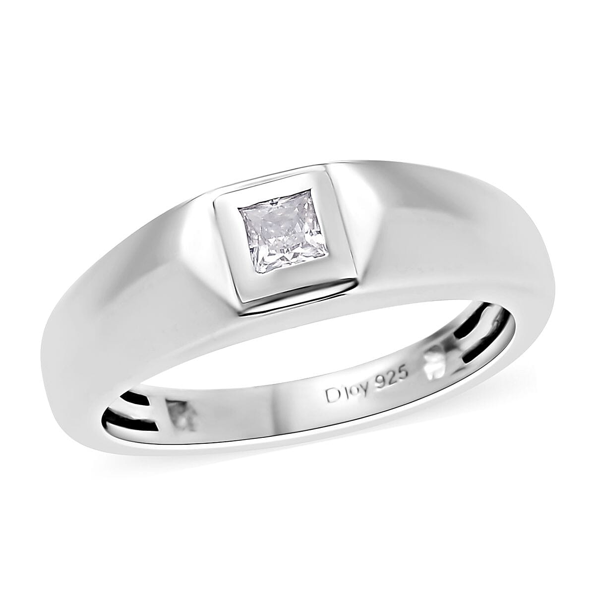 Moissanite Solitaire Ring in Platinum Over Sterling Silver (Size 6.0) 0.15 ctw