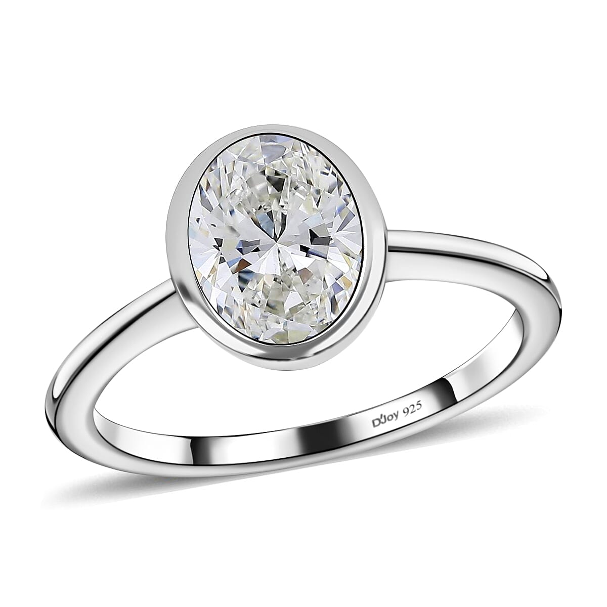 Moissanite Solitaire Ring, Platinum Over Sterling Silver Ring, Moissanite Jewelry For Her 1.35 ctw