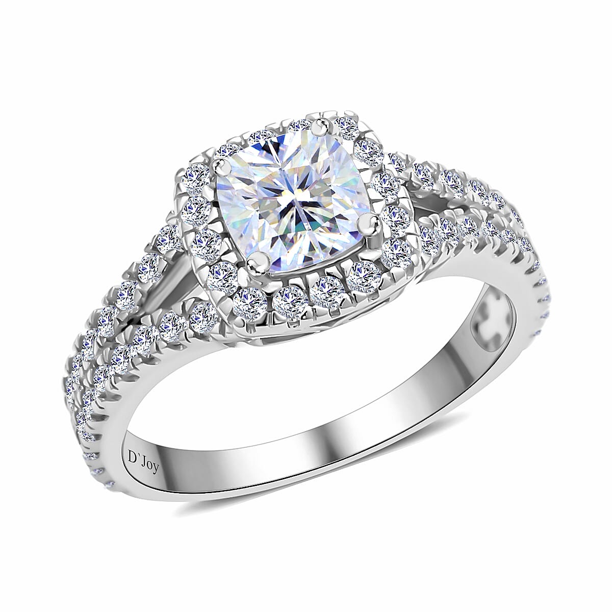 Moissanite Split Shank Ring in Sterling Silver (Size 7.0) 1.75 ctw