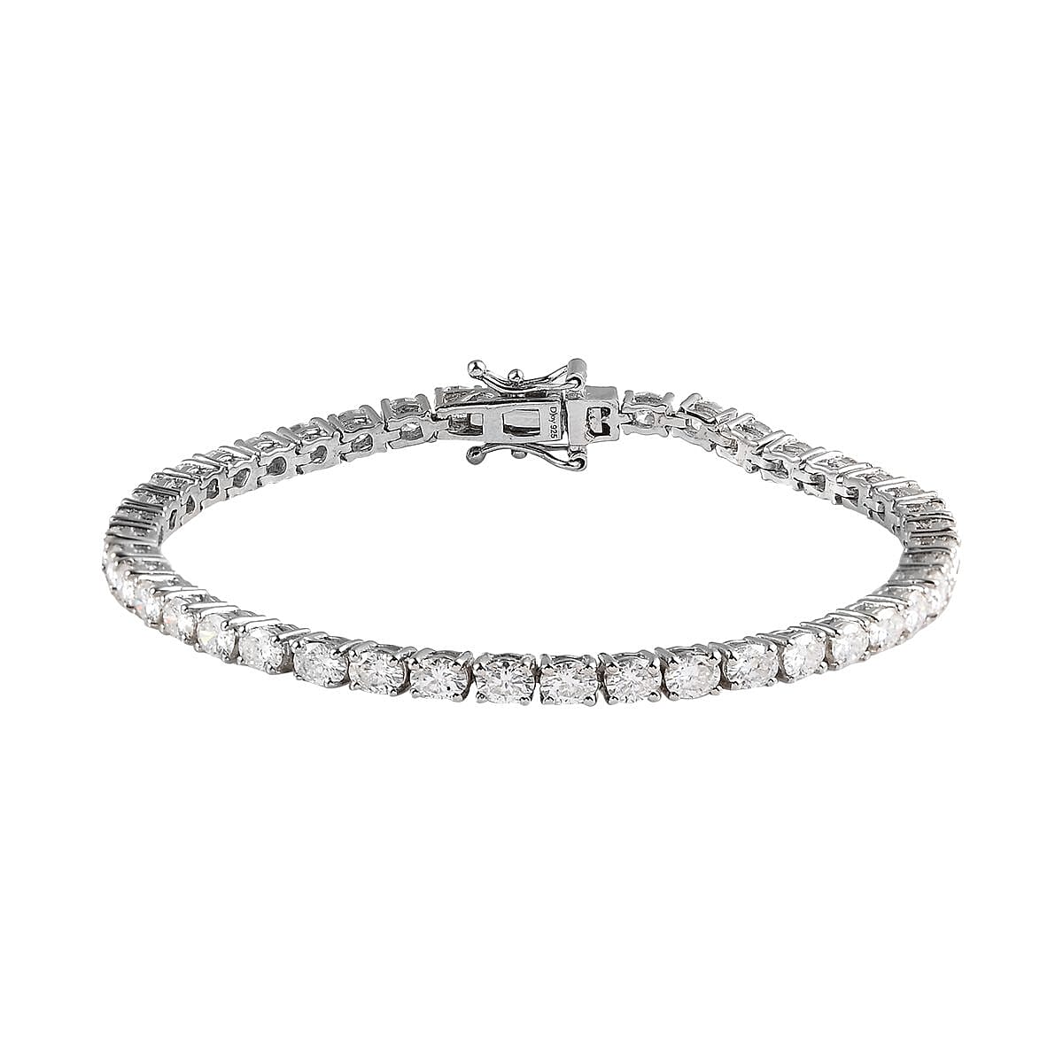 The stillness of art is captured in this moissanite tennis bracelet, graceful and refined. This statement making bracelet is carefully accented with a moissanite, secured in prongs. This gemstone has more fire and brilliance than any other gemstone. This incredibly durable bracelet is exquisitely fashioned in sterling silver with a luminous finish, exuding extravagance and brilliance from all the edges. This metal frame is tarnish-resistant and offers timeless elegance to the bracelet. This highly ethical gemstone ranks nine on the Moh’s scale of hardness, making it sturdier than most of the gemstones are available. Tennis bracelets are also known as eternity bracelets.