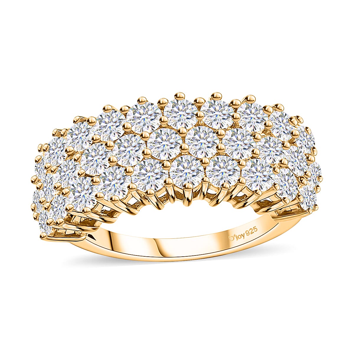 Moissanite Three Row Band Ring in Vermeil Yellow Gold Over Sterling Silver (Size 8.0) 3.25 ctw