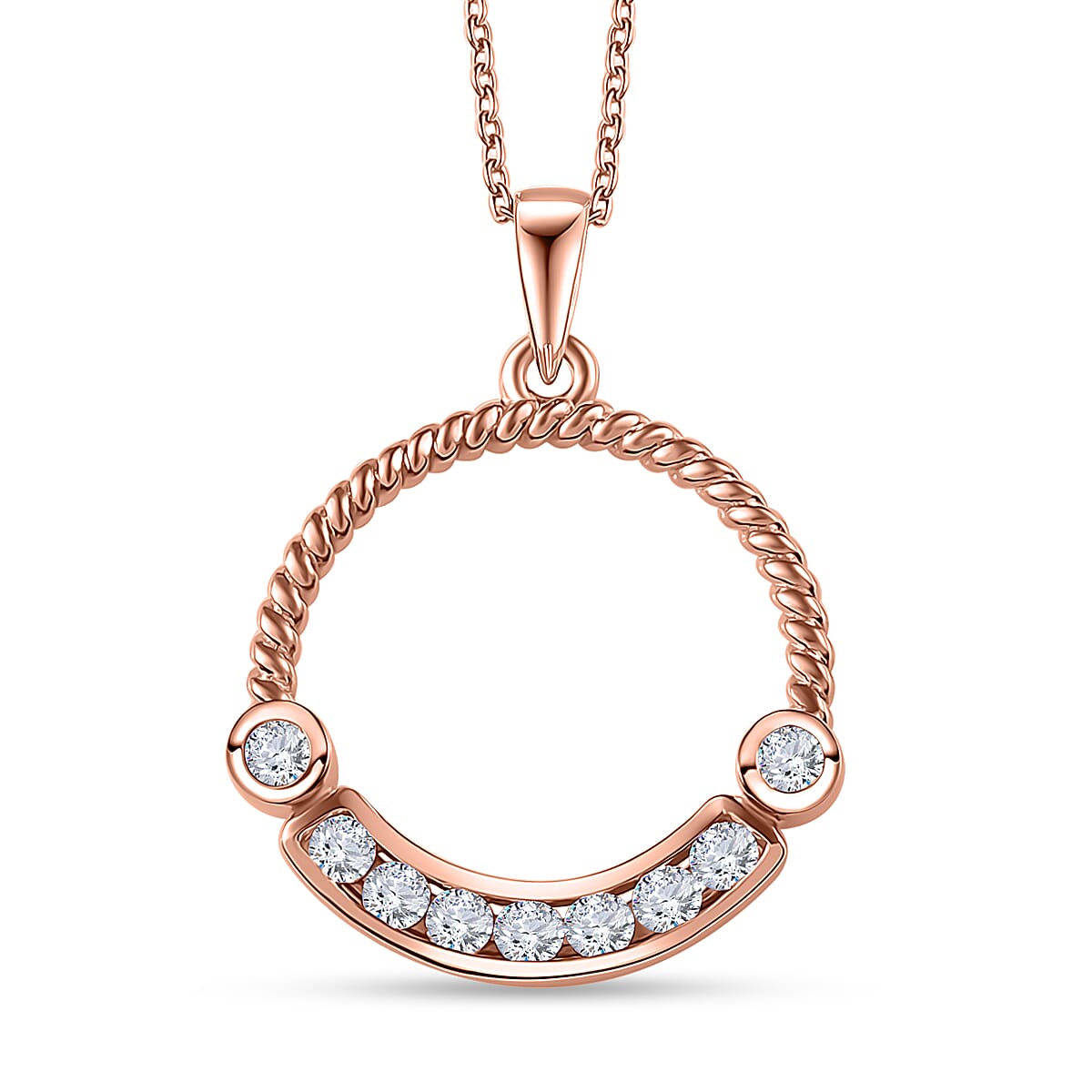 Moissantie Circle Pendant Necklace 20 Inches in Vermeil Rose Gold Over Sterling Silver 0.50 ctw