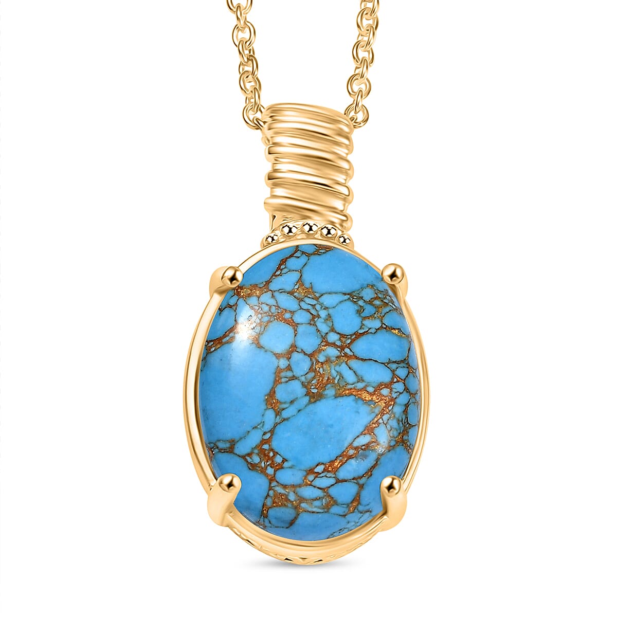 Mojave Blue Turquoise 18.00 ctw Pendant in 18K YG Plated with ION Plated YG Stainless Steel Necklace 20 Inches
