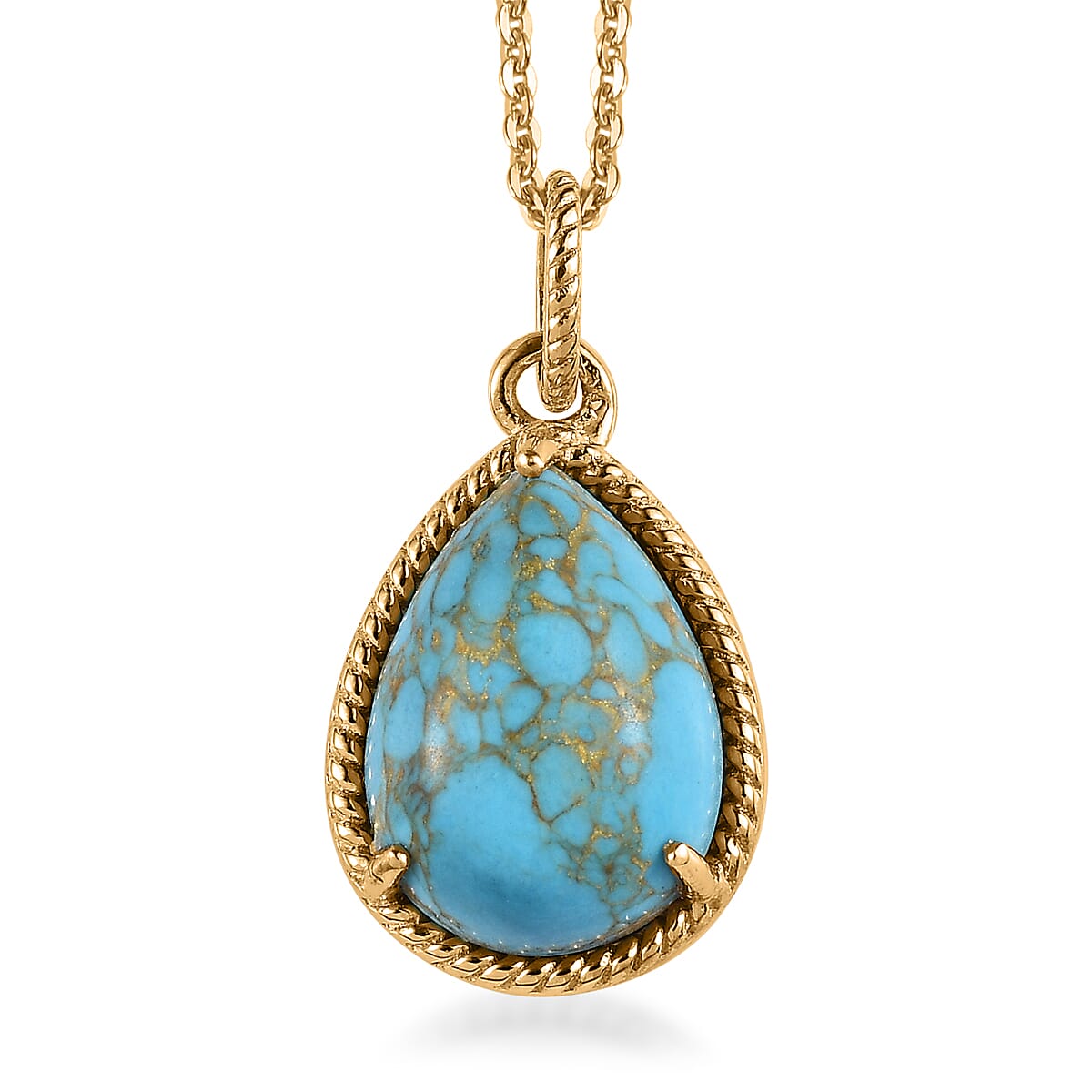 Mojave Blue Turquoise Pear Shape Pendant Necklace 20 Inches in Vermeil Yellow Gold Over Sterling Silver 4.85 ctw