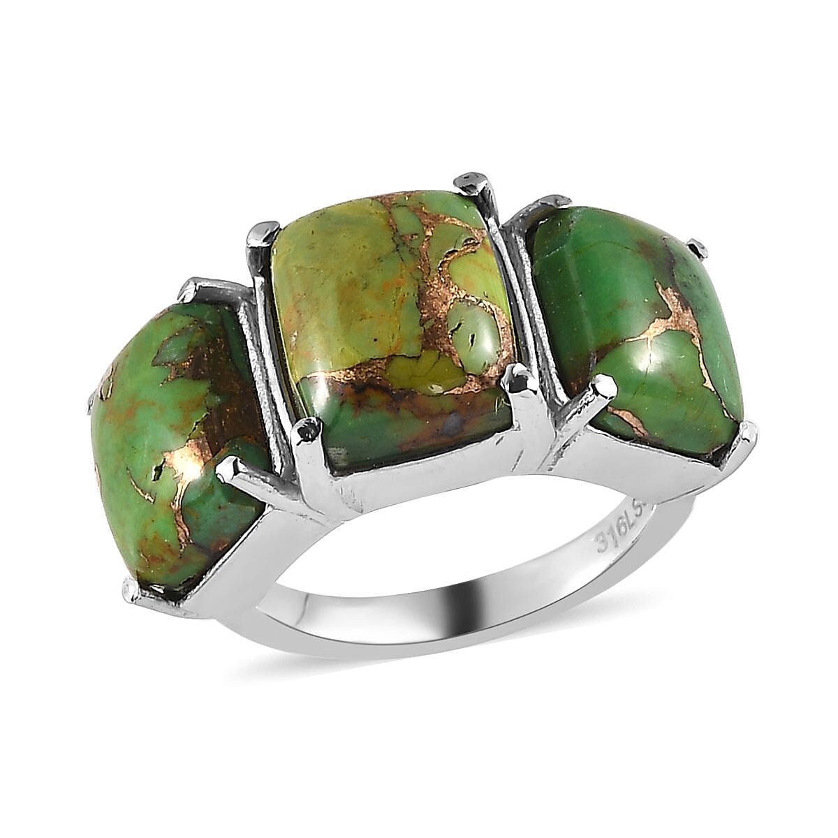 Mojave Green Turquoise 10.20 ctw 3 Stone Ring in Stainless Steel (Size 8.0)