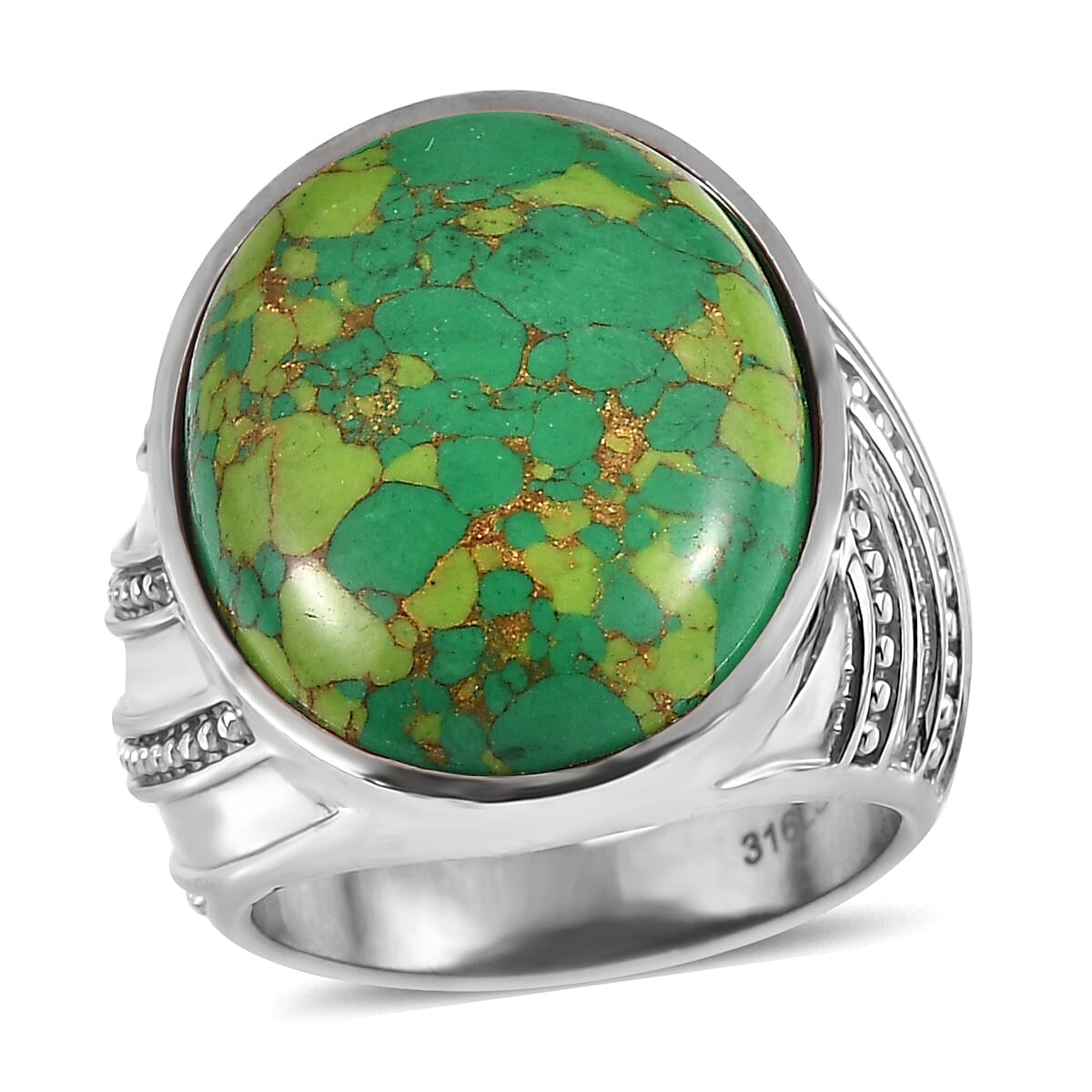 Mojave Green Turquoise 14.00 ctw Ring in Stainless Steel (Size 6.0)