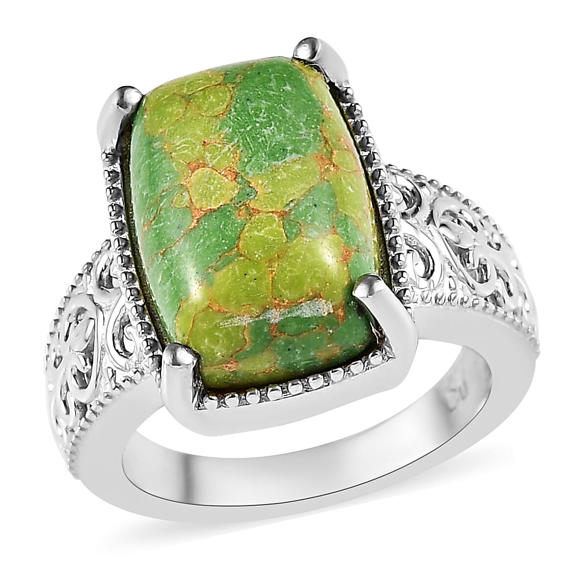 Mojave Green Turquoise Solitaire Ring in Platinum Over Copper with Magnet (Size 7.0) 6.35 ctw