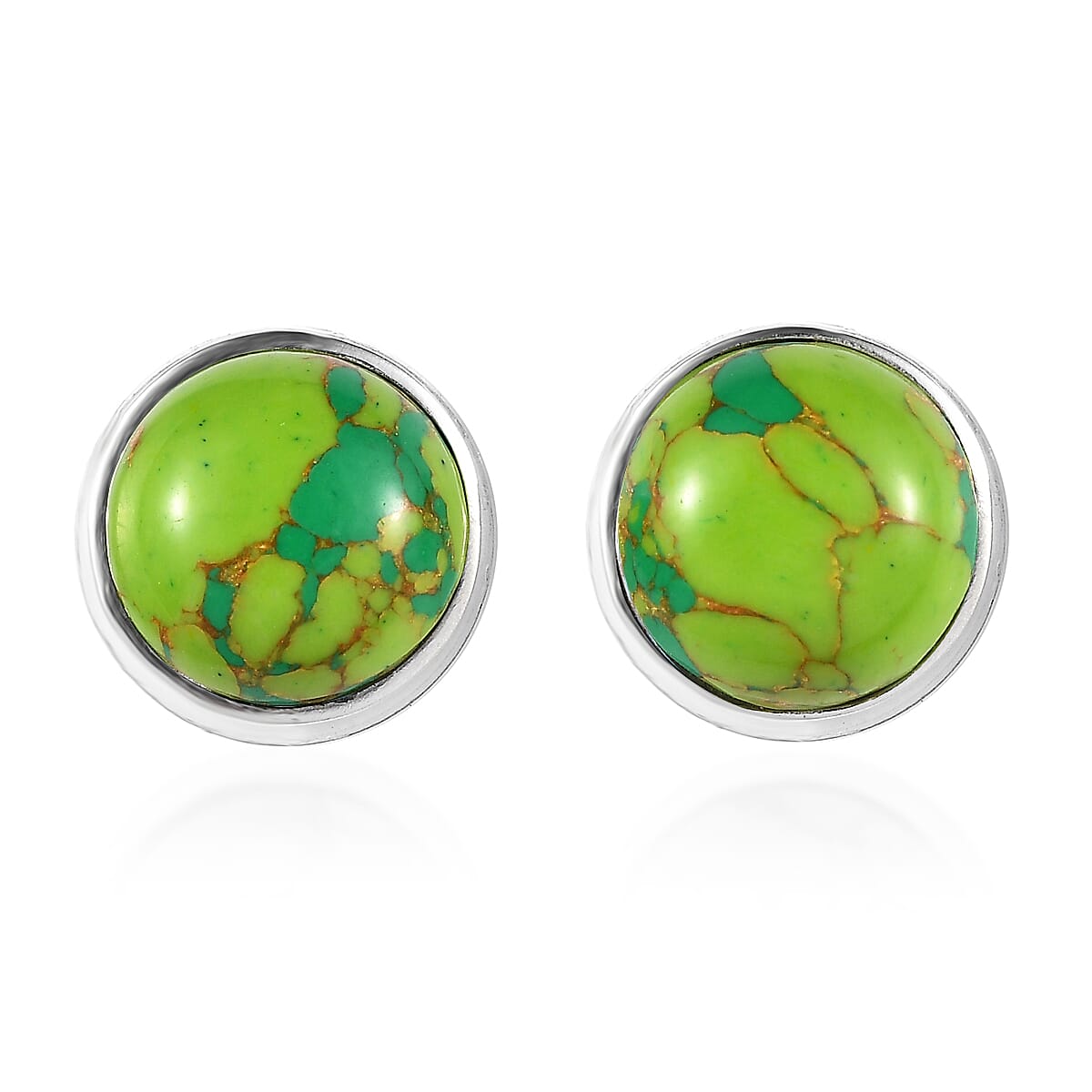 Mojave Green Turquoise Solitaire Stud Earrings in Sterling Silver 5.15 ctw