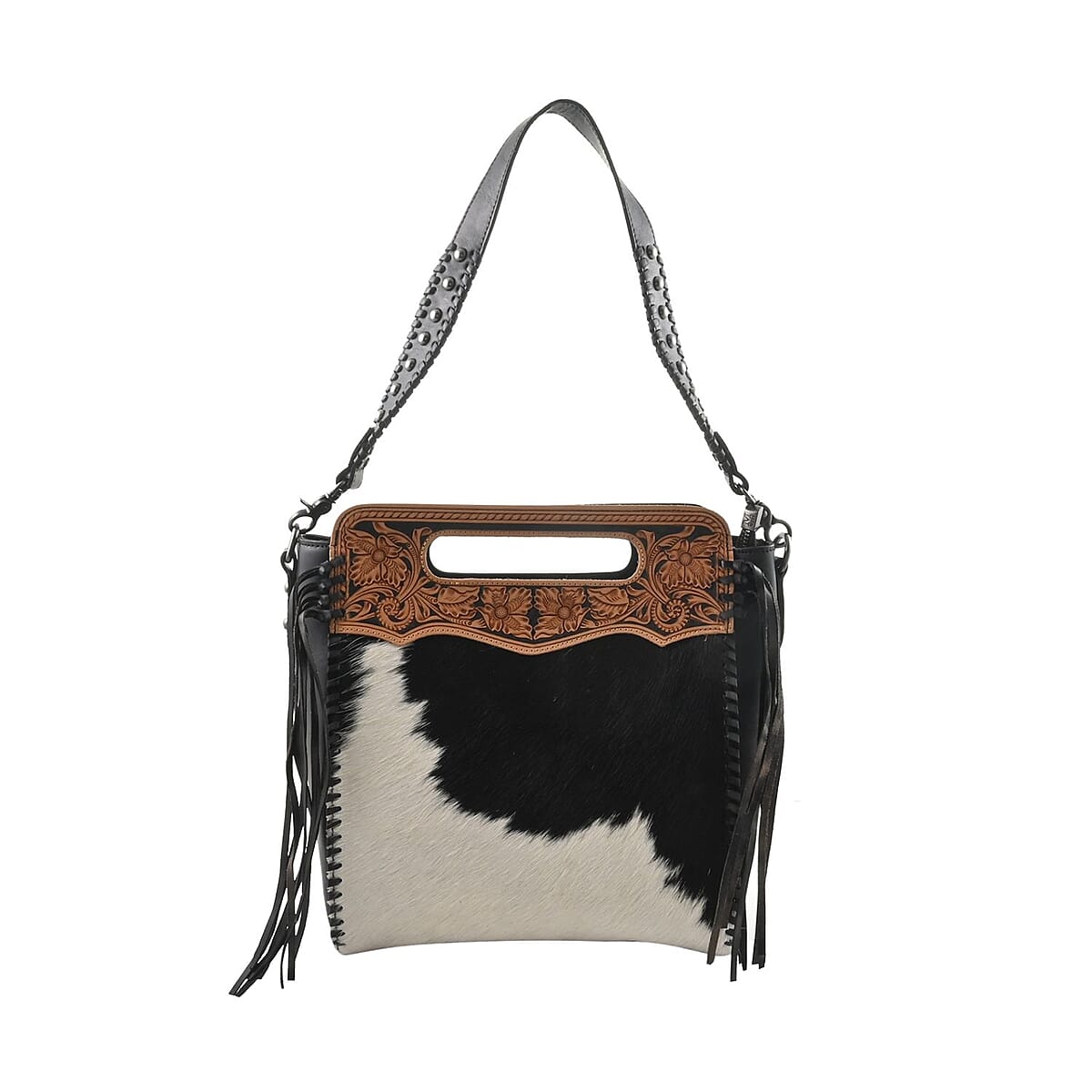 Montana West Black Genuine Leather & Hair-on Cowhide Doble Handle Shoulder Bag