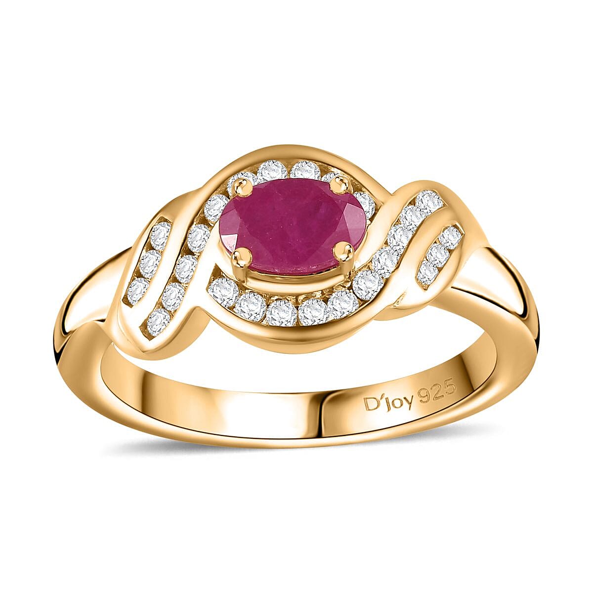 Montepuez Ruby and White Zircon Art Deco Ring in 18K Vermeil Yellow Gold Over Sterling Silver (Size 9.0) 0.90 ctw