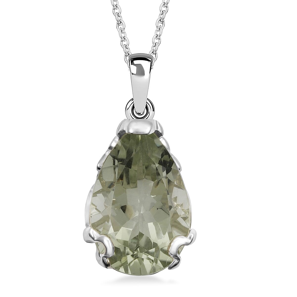 Montezuma Prasiolite 5.50 ctw Pendant Necklace in Rhodium Over Sterling Silver (18 Inches)