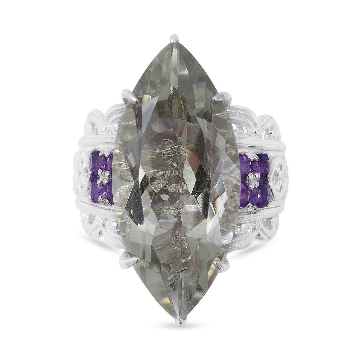 Montezuma Prasiolite and Amethyst Ring in Platinum Over Sterling Silver (Size 6.0) 12.00 ctw