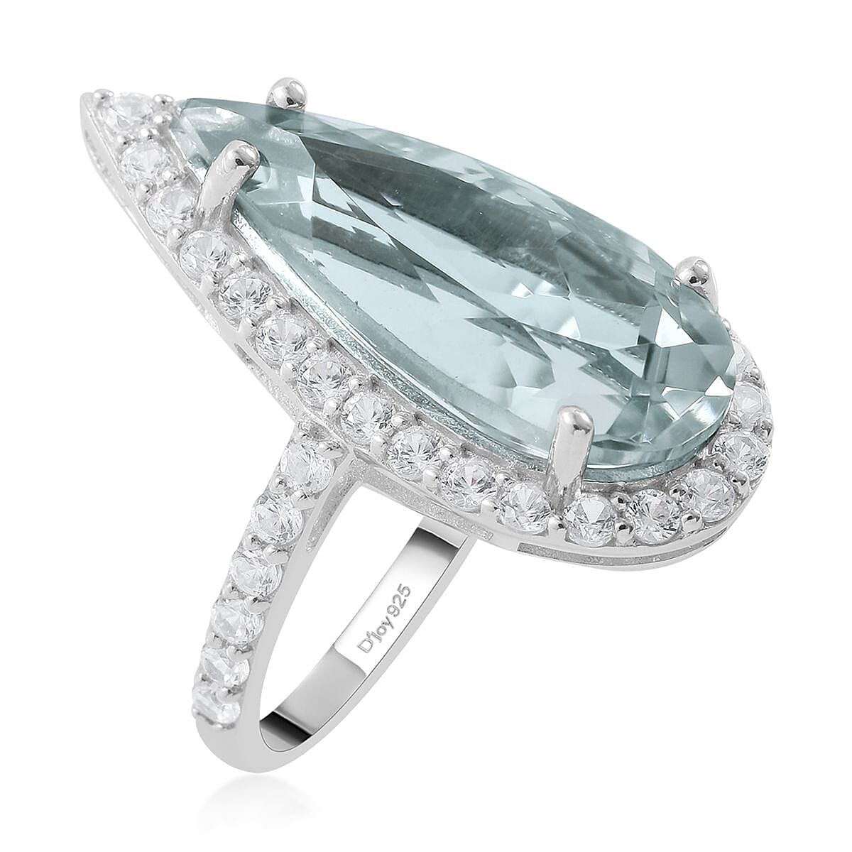 Montezuma Prasiolite and White Zircon Pear Shape Halo Ring in Platinum Over Sterling Silver (Size 9.0) 8.25 ctw