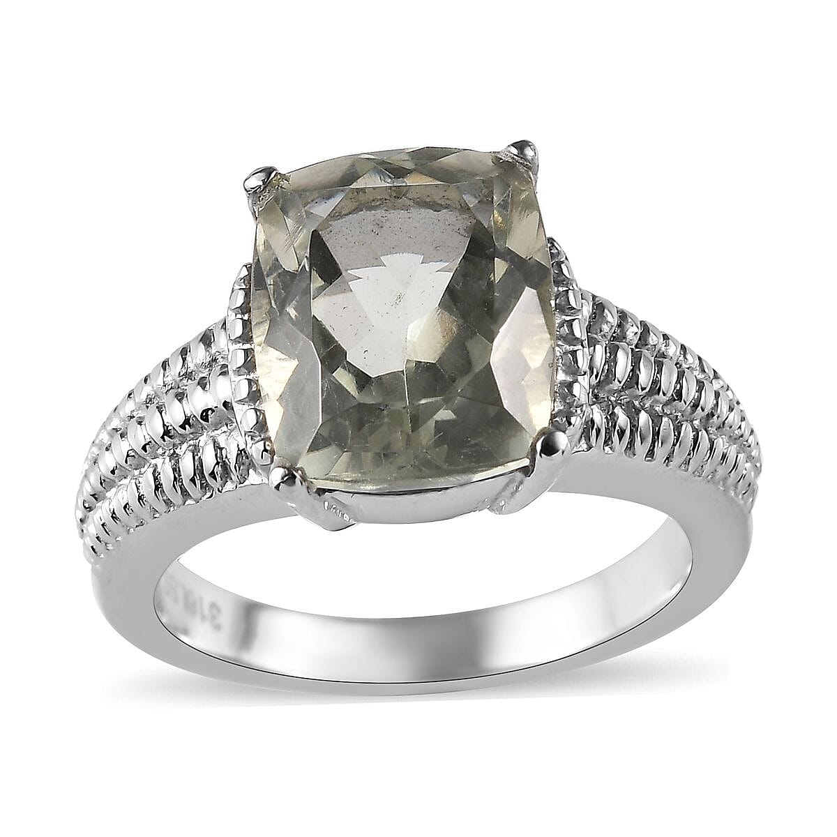 Montezuma Prasiolite Solitaire Ring in Stainless Steel (Size 10.0) 4.00 ctw