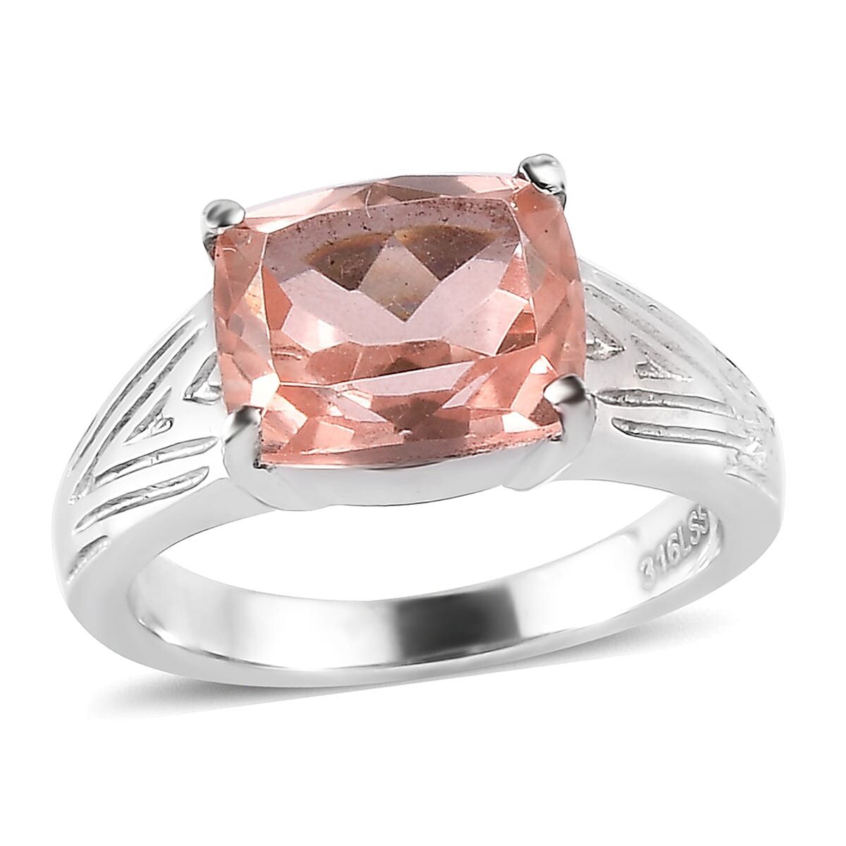 Morganique Quartz (Triplet) 3.50 ctw Solitaire Ring in Stainless Steel (Size 6.0)