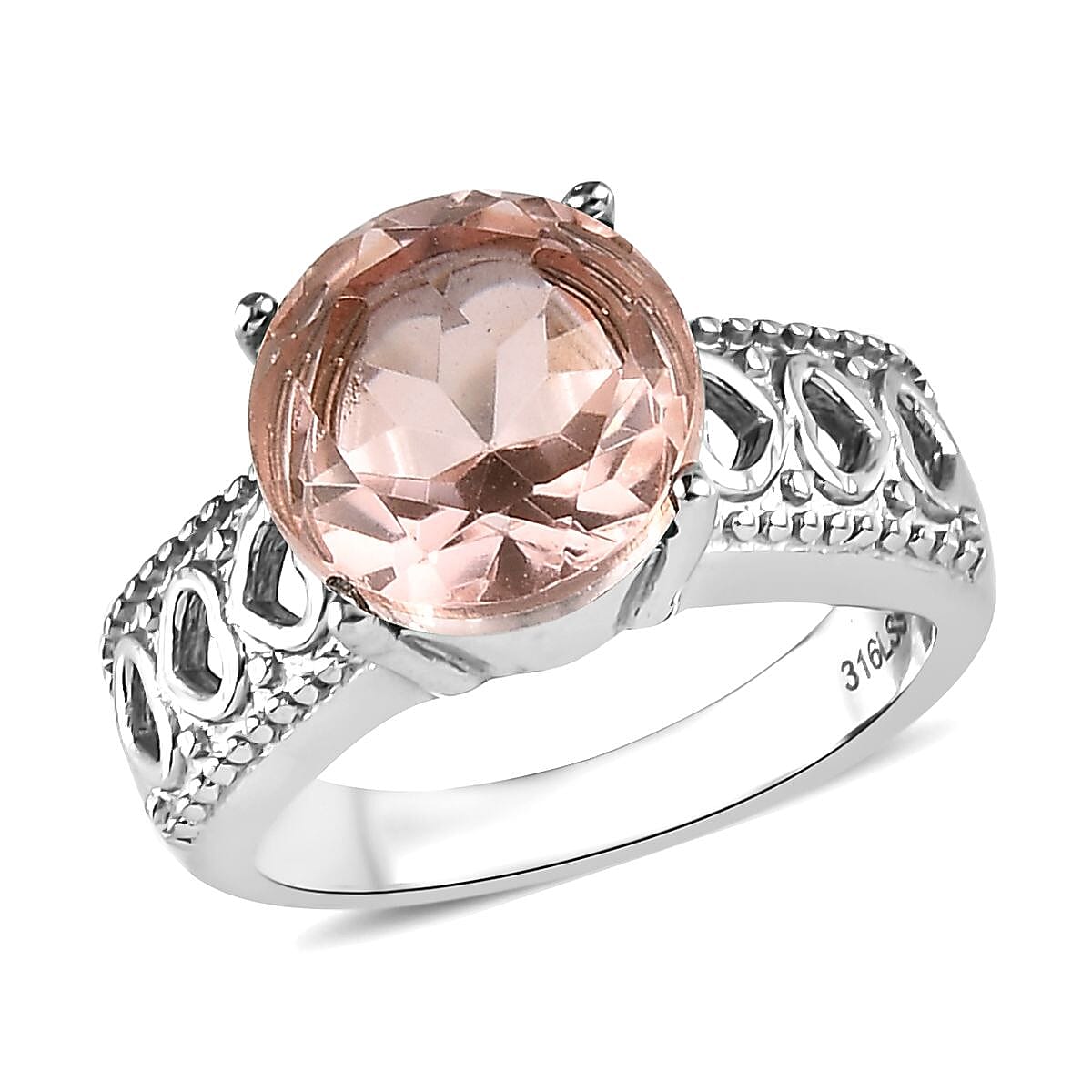 Morganique Quartz (Triplet) Solitaire Ring in Stainless Steel (Size 5.0) 3.80 ctw