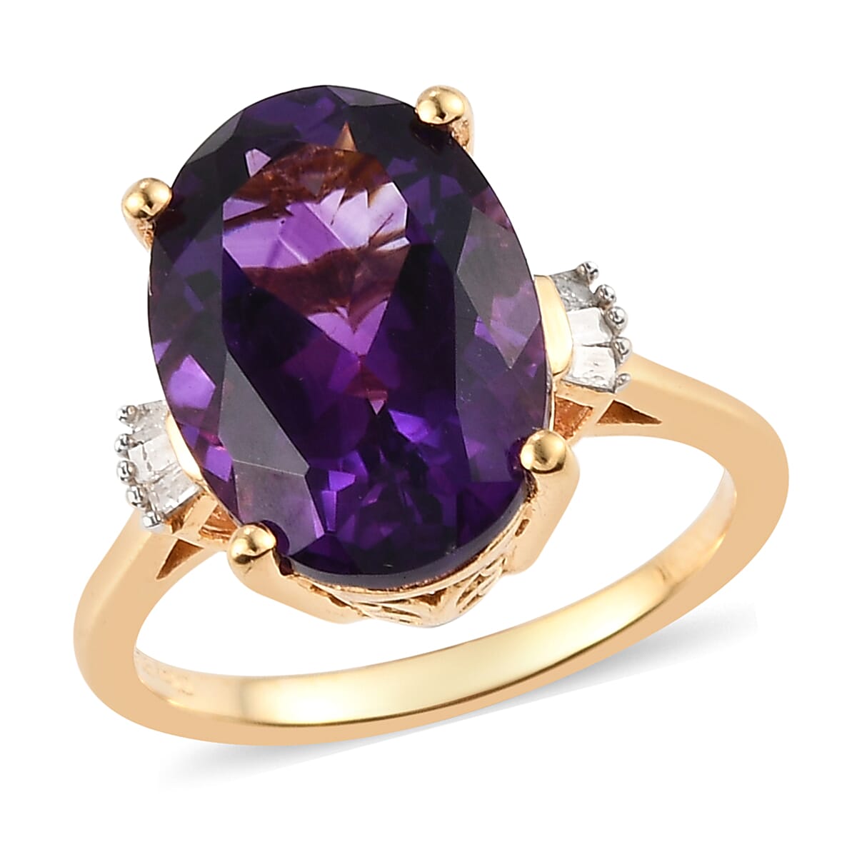 Moroccan Amethyst and Diamond Ring in Vermeil Yellow Gold Over Sterling Silver (Size 10.0) 5.90 ctw