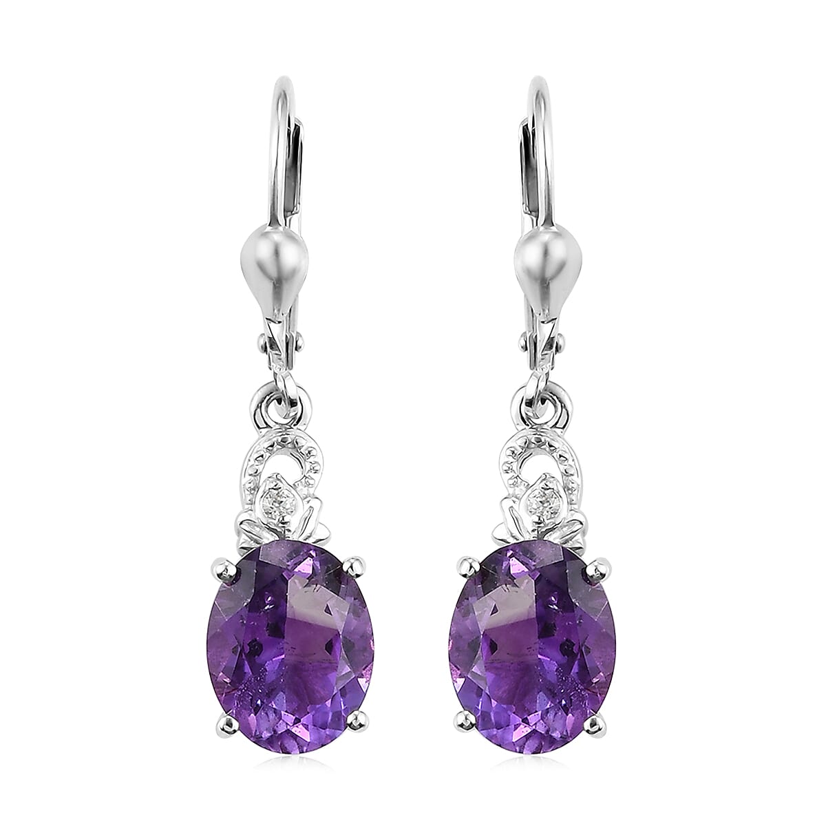 Moroccan Amethyst and White Zircon Lever Back Earrings in Platinum Over Sterling Silver 5.00 ctw