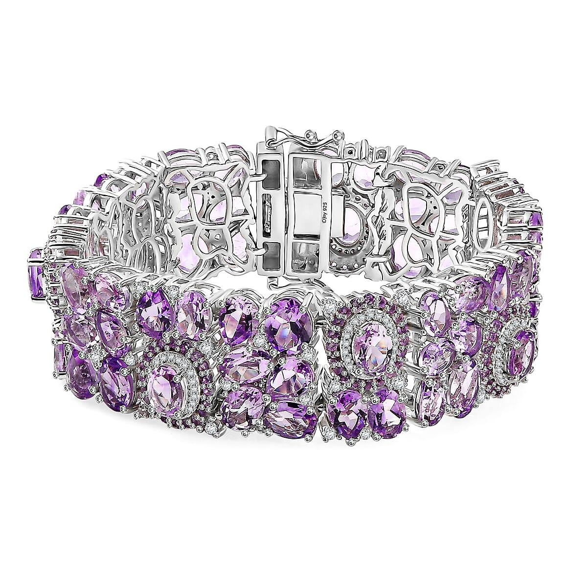Moroccan Rose and Multi Gemstone 52.00 ctw Carpet of Flowers Bracelet in Rhodium Over Sterling Silver (6.50 In)