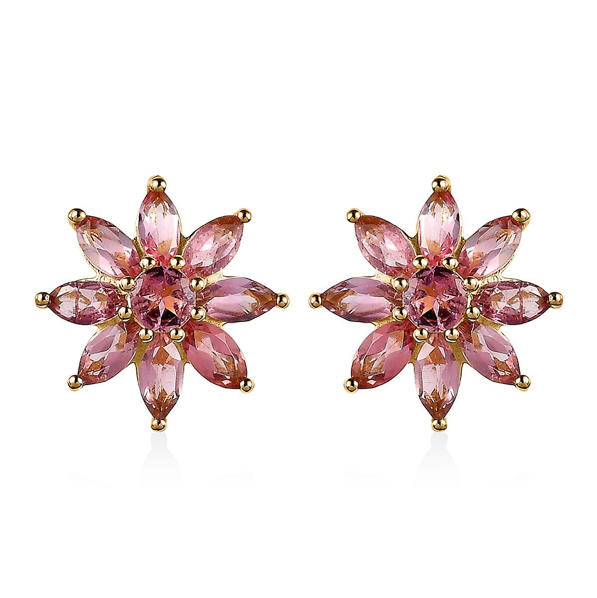 Morro Redondo Pink Tourmaline Sunburst Earrings in Vermeil Yellow Gold Over Sterling Silver 2.25 ctw