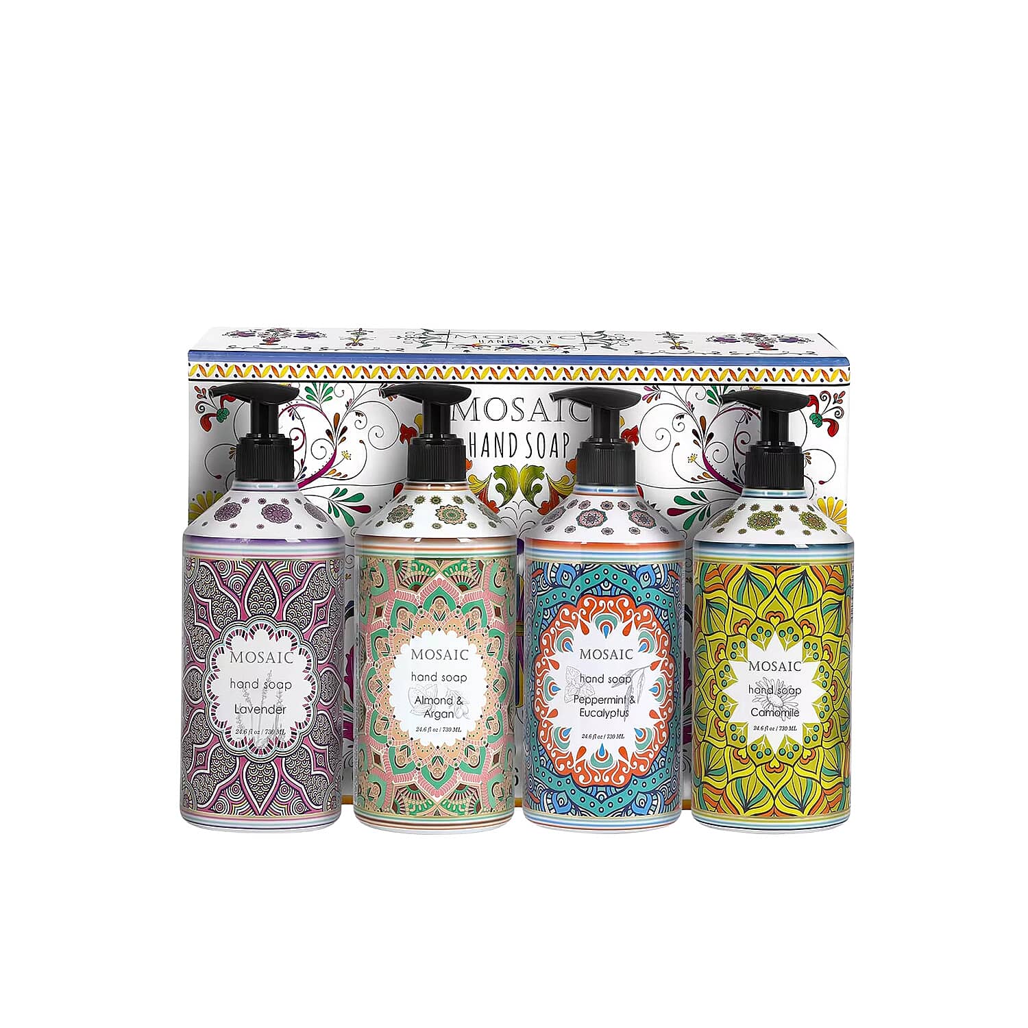 Mosaic Liquid Hand Soap Series- Almond & Argan, Camomile, Lavender, Peppermint & Eucalyptus (24.6oz Each)