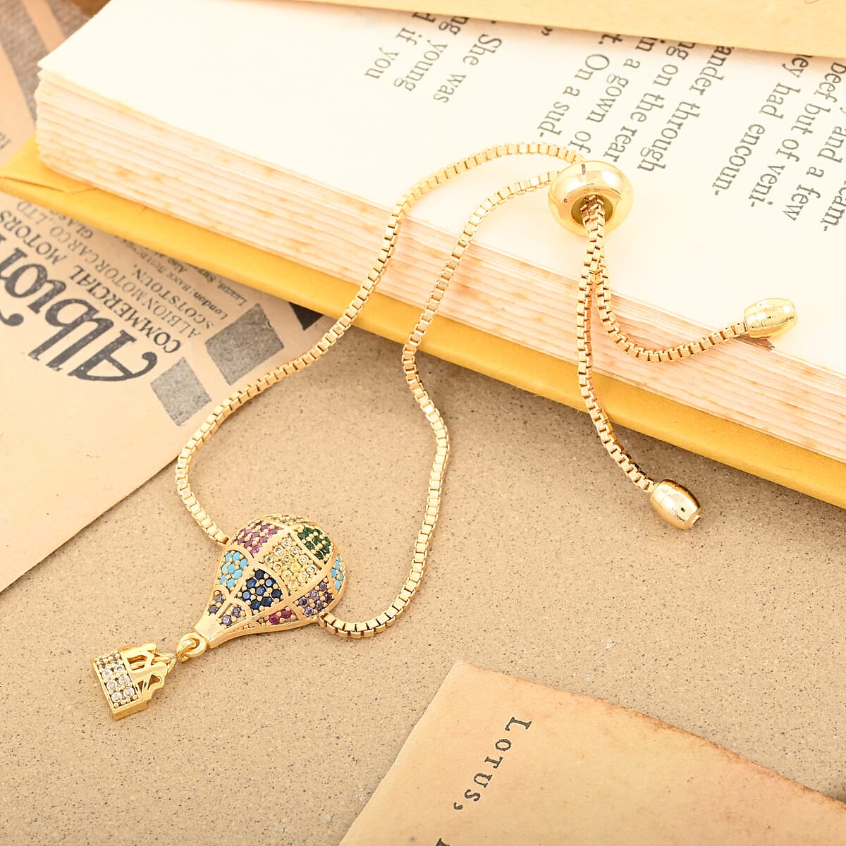 Mosaic Style Multi Color Zircon Air Ballon Bolo Bracelet in Goldtone