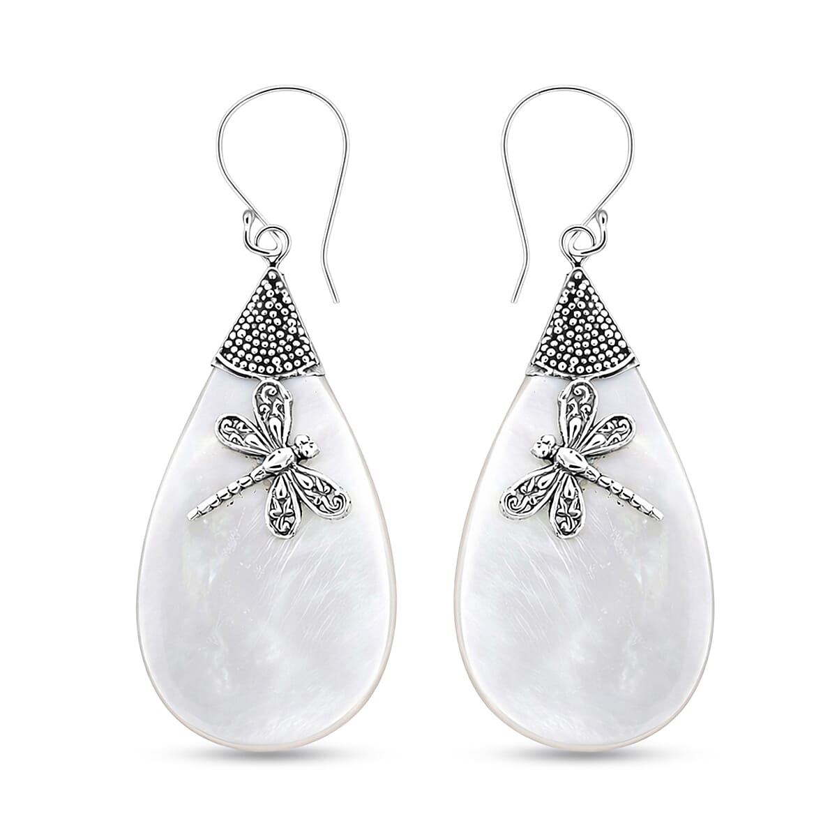 Mother Of Pearl Dragonfly Earrings in Sterling Silver