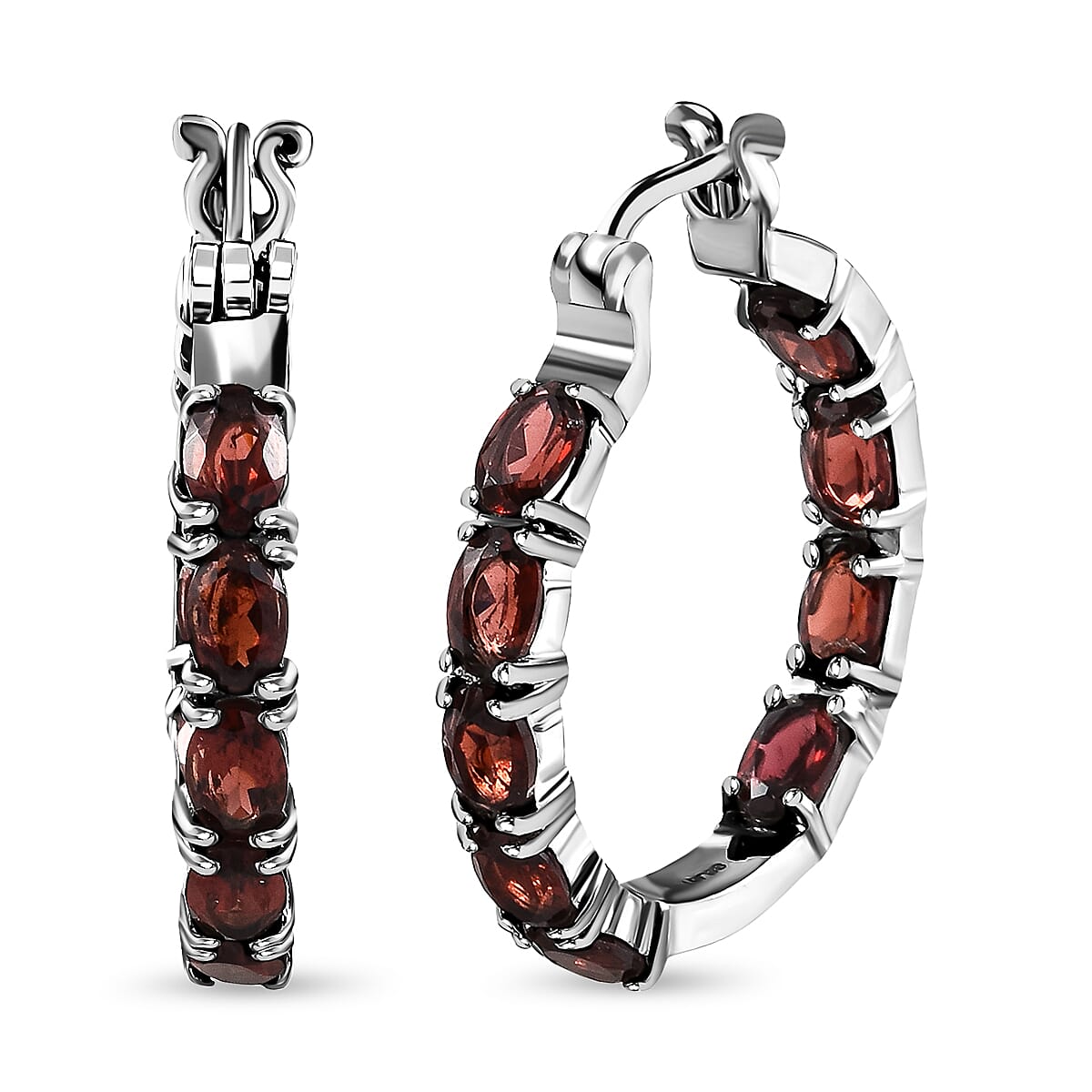 Mozambique Garnet 10.20 ctw Hoop Earrings in Stainless Steel