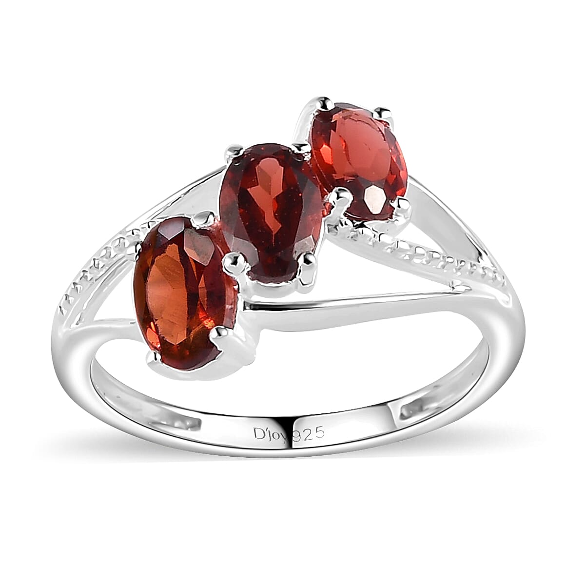Mozambique Garnet 3 Stone Ring in Sterling Silver (Size 10.0) 1.70 ctw