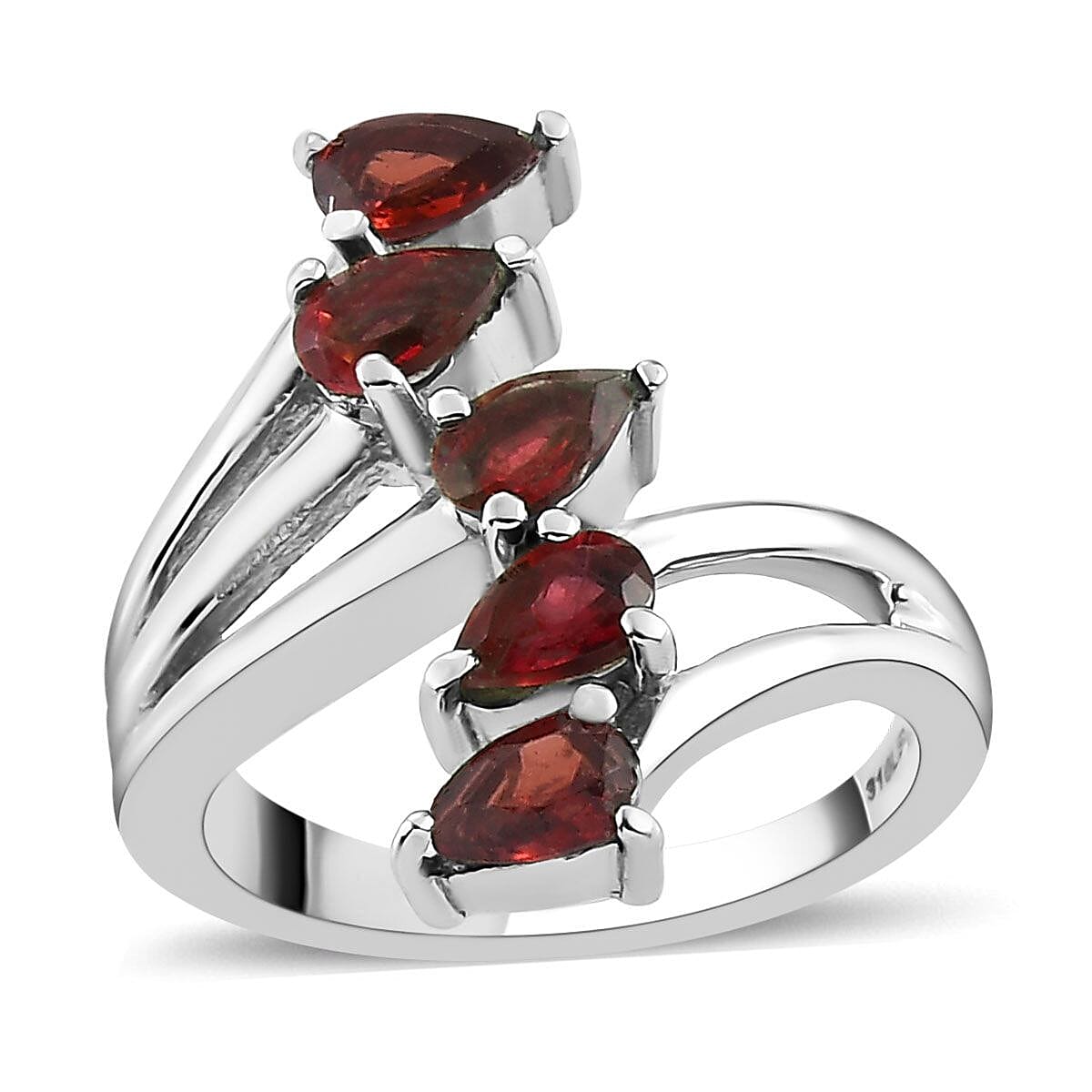 Mozambique Garnet 5 Stone Ring in Stainless Steel (Size 9.0) 1.35 ctw | Tarnish-Free, Waterproof, Sweat Proof Jewelry