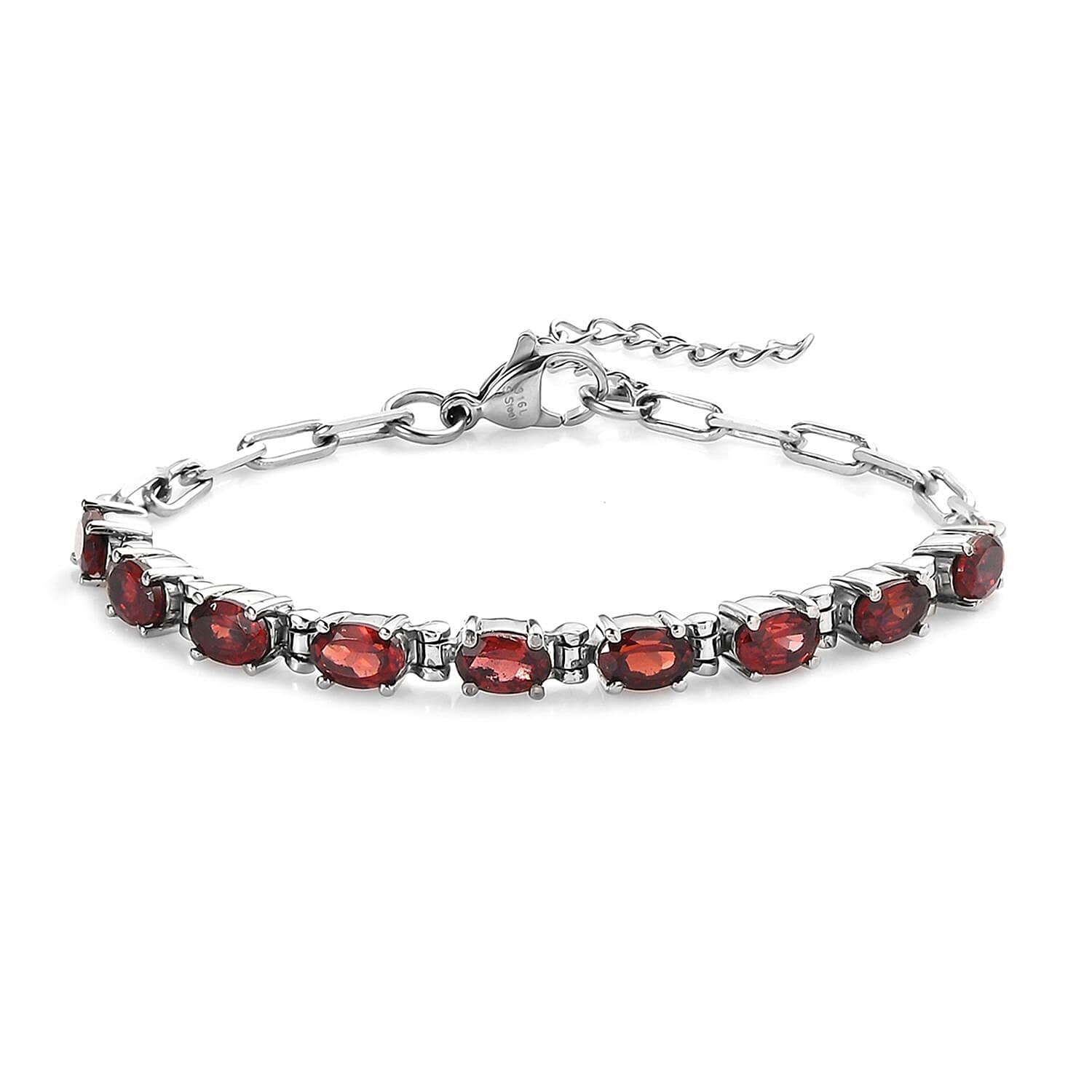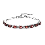 Mozambique Garnet 5.25 ctw Paper Clip Chain Bracelet in Platinum Bond and Stainless Steel (6.5-8.0In)