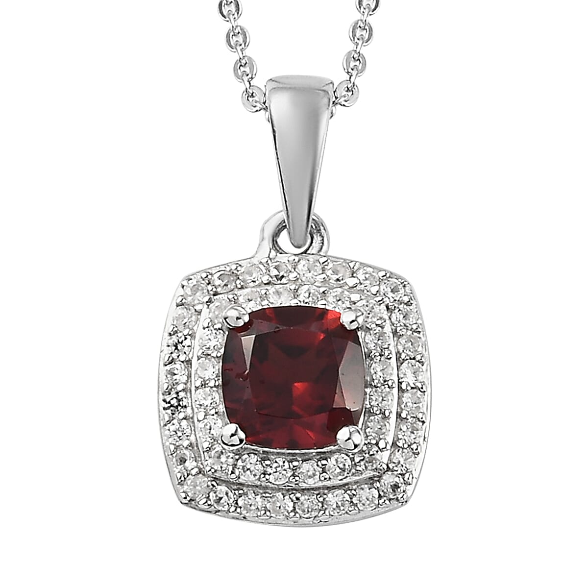 Mozambique Garnet and Natural White Zircon Pendant Necklace 20 Inches in Platinum Over Sterling Silver 1.70 ctw