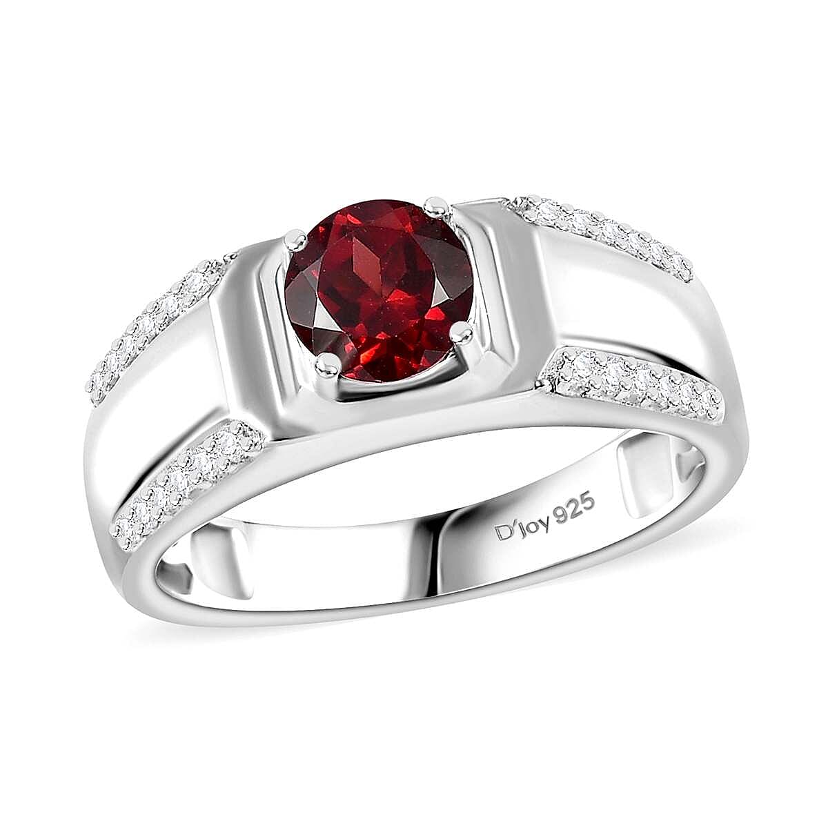 Mozambique Garnet and White Zircon 1.30 ctw Men's Ring in Rhodium Over Sterling Silver (Size 13.0)