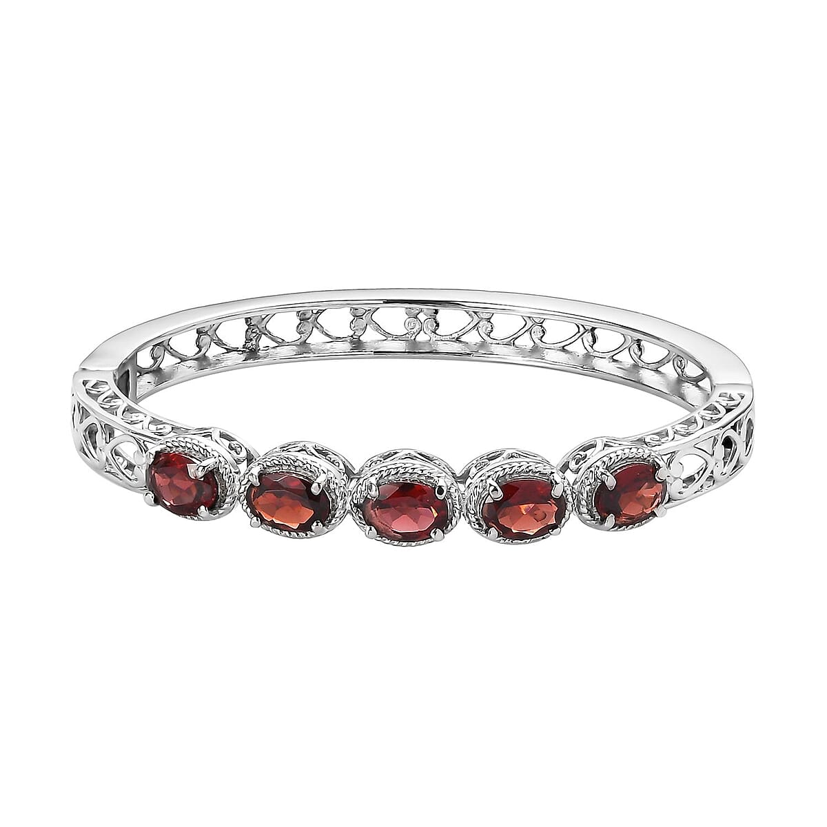 Mozambique Garnet Bangle Bracelet in Stainless Steel (6.50 In) 7.65 ctw | Tarnish-Free, Waterproof, Sweat Proof Jewelry
