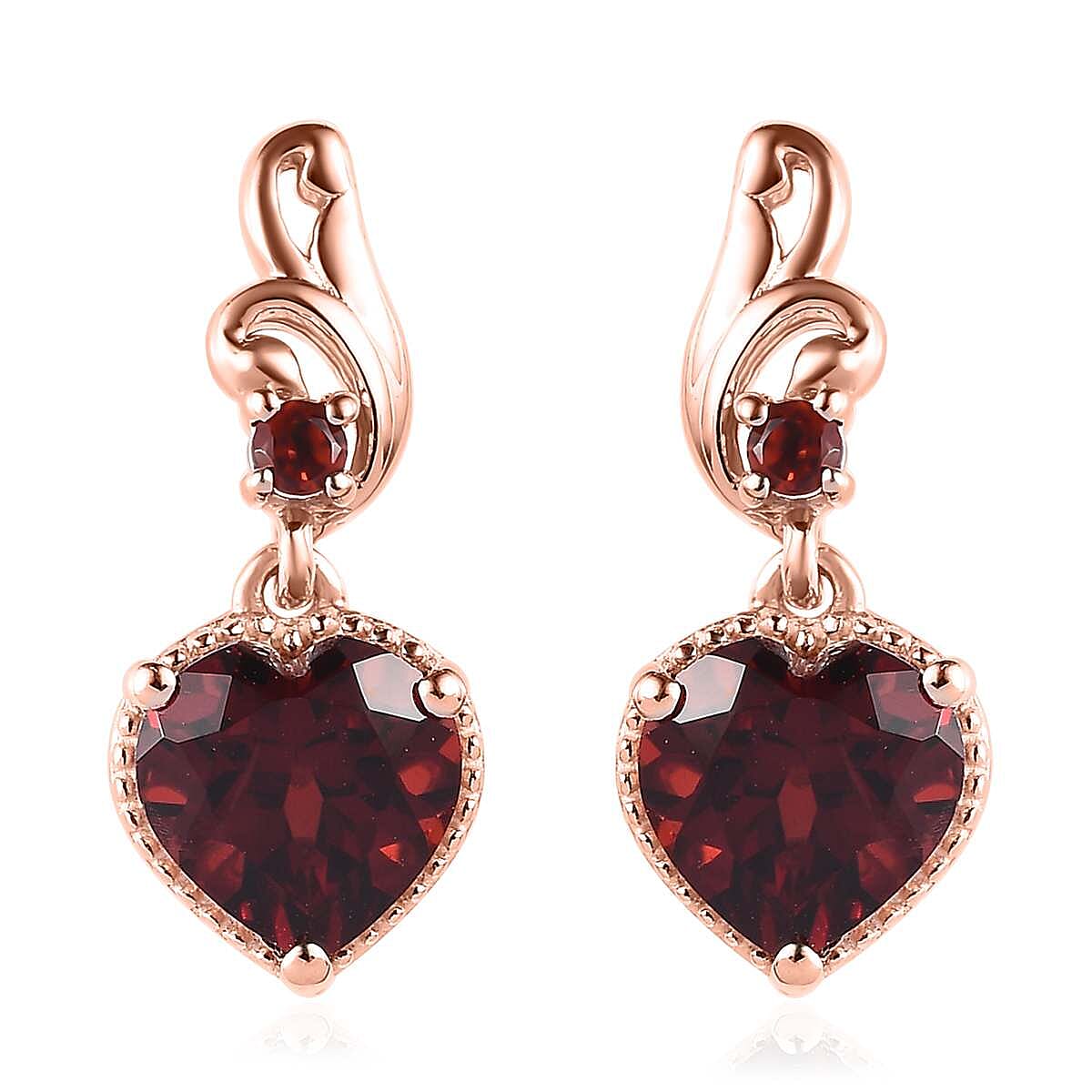 Mozambique Garnet Dangling Earrings in Vermeil Rose Gold Over Sterling Silver 3.00 ctw
