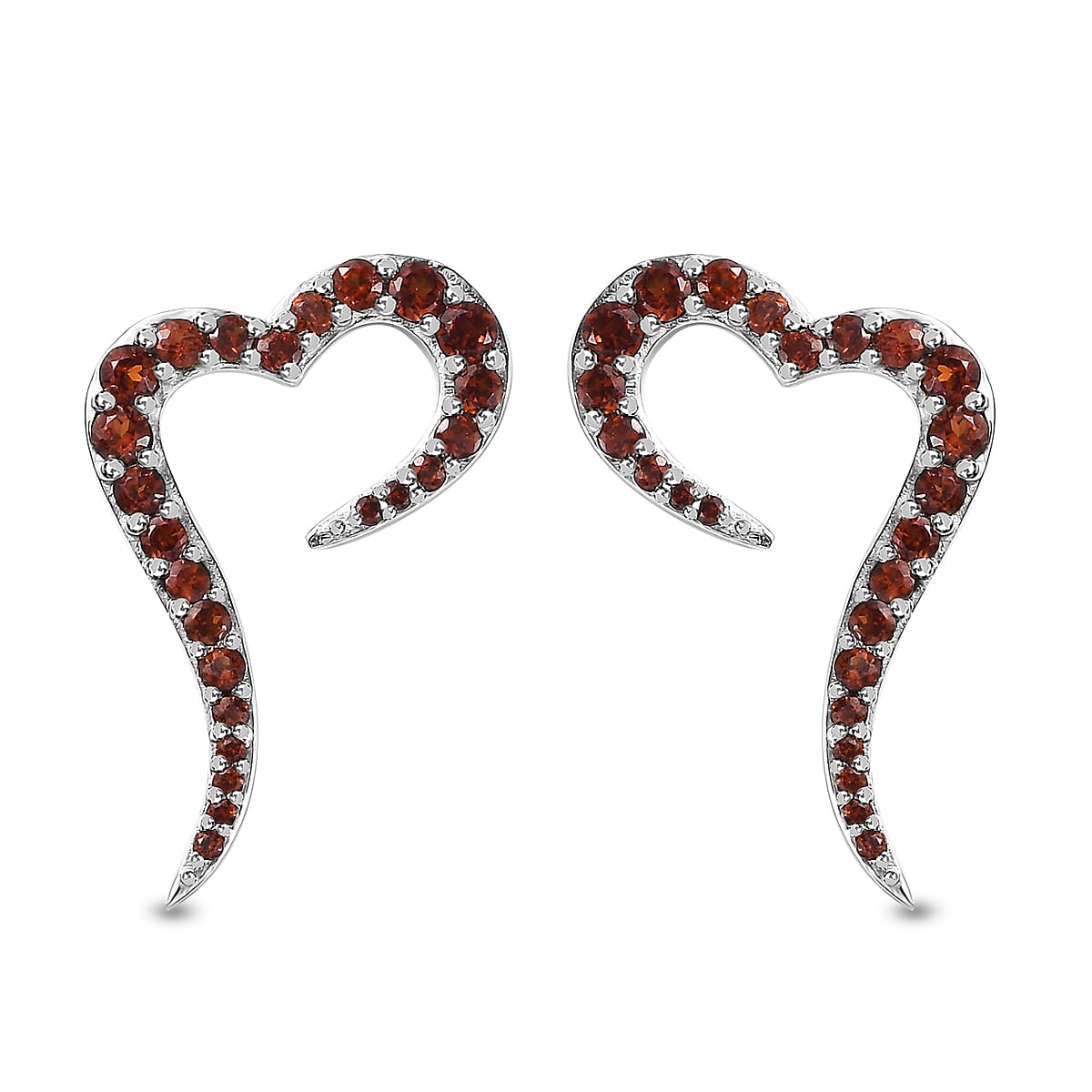 Mozambique Garnet Eternal Love Snake Heart Earrings in Platinum Over Sterling Silver 1.10 ctw