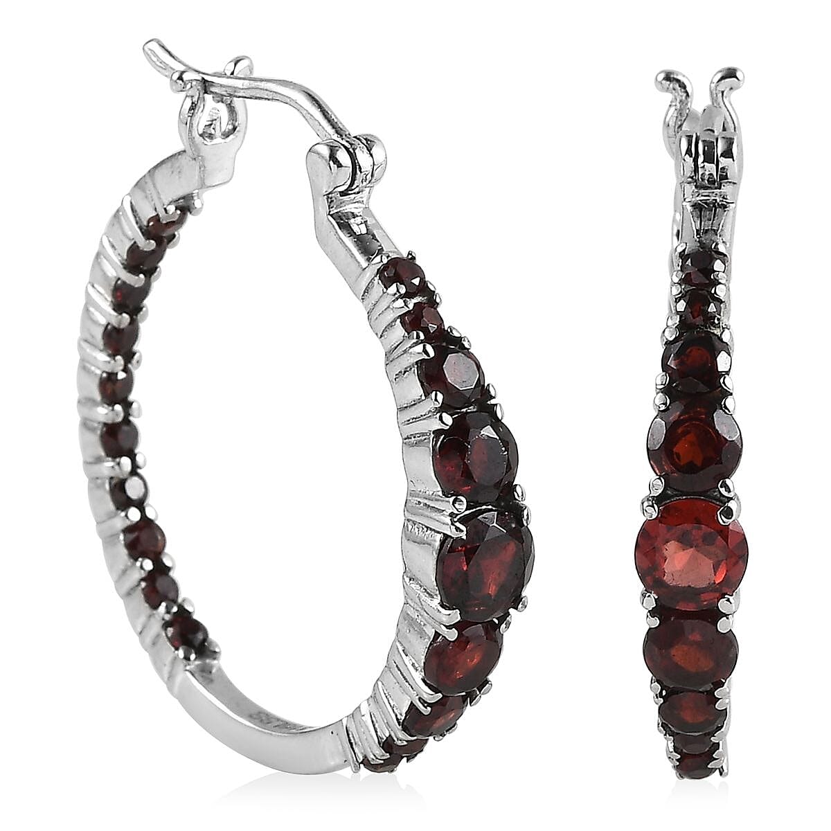 Mozambique Garnet Inside Out Hoop Earrings in Stainless Steel 4.00 ctw