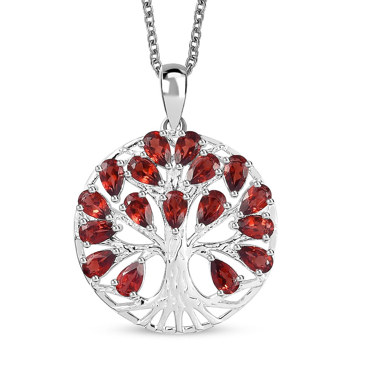 Mozambique Garnet Pendant in Tree of Life Platinum Over Sterling Silver with Stainless Steel Necklace 20 Inches 3.40 ctw