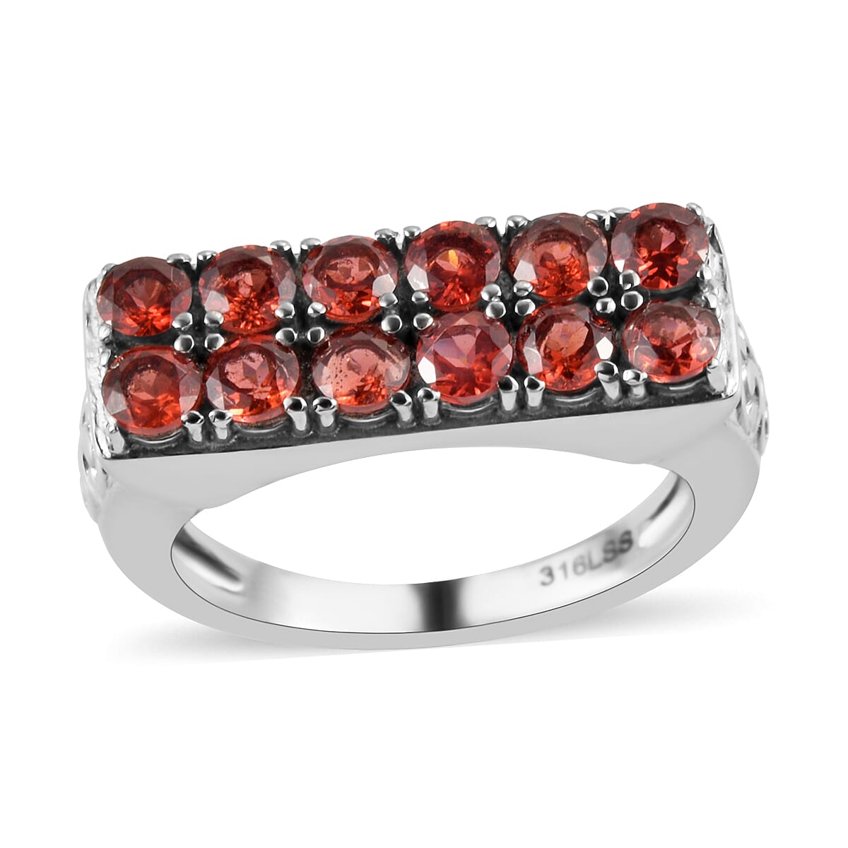 Mozambique Garnet Ring in Stainless Steel (Size 8.0) 1.75 ctw | Tarnish-Free, Waterproof, Sweat Proof Jewelry