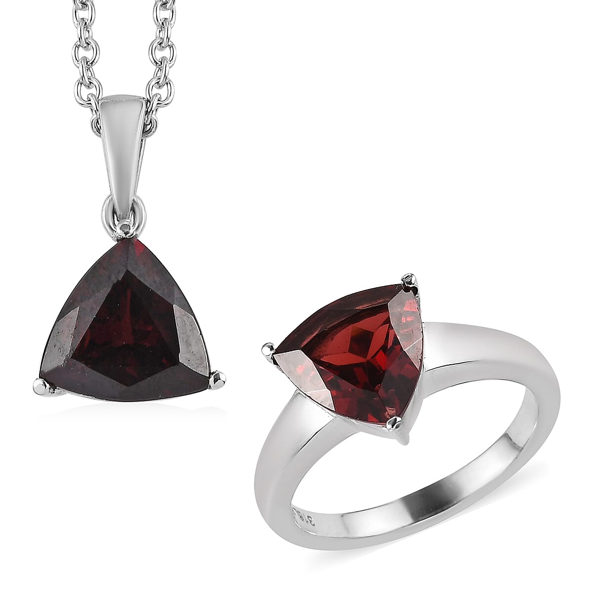 Mozambique Garnet Solitaire Ring and Pendant Necklace 20 Inches in Stainless Steel 5.20 ctw