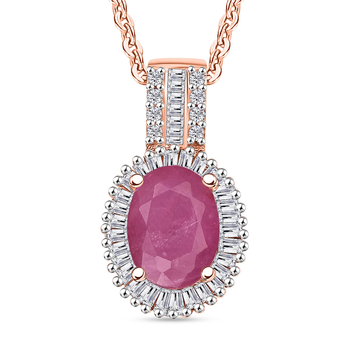 Mozambique Ruby and Diamond Halo Pendant Necklace in 18K Vermeil Rose Gold Over Sterling Silver 20 Inches 1.83 ctw (Del. in 10-12 Days)