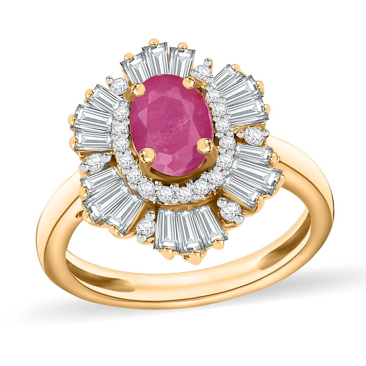 Mozambique Ruby and White Zircon 3.15 ctw Snowflake Ring in 18K Vermeil Yellow Gold Over Sterling Silver (Size 9.0) (Del. in 10-12 Days)