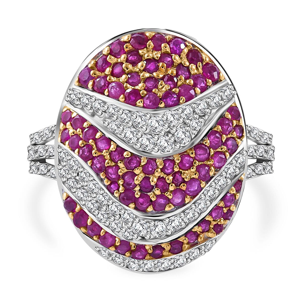 Mozambique Ruby and White Zircon 3.50 ctw Ocean Waves Ring in Rhodium Over Sterling Silver (Size 9.0)