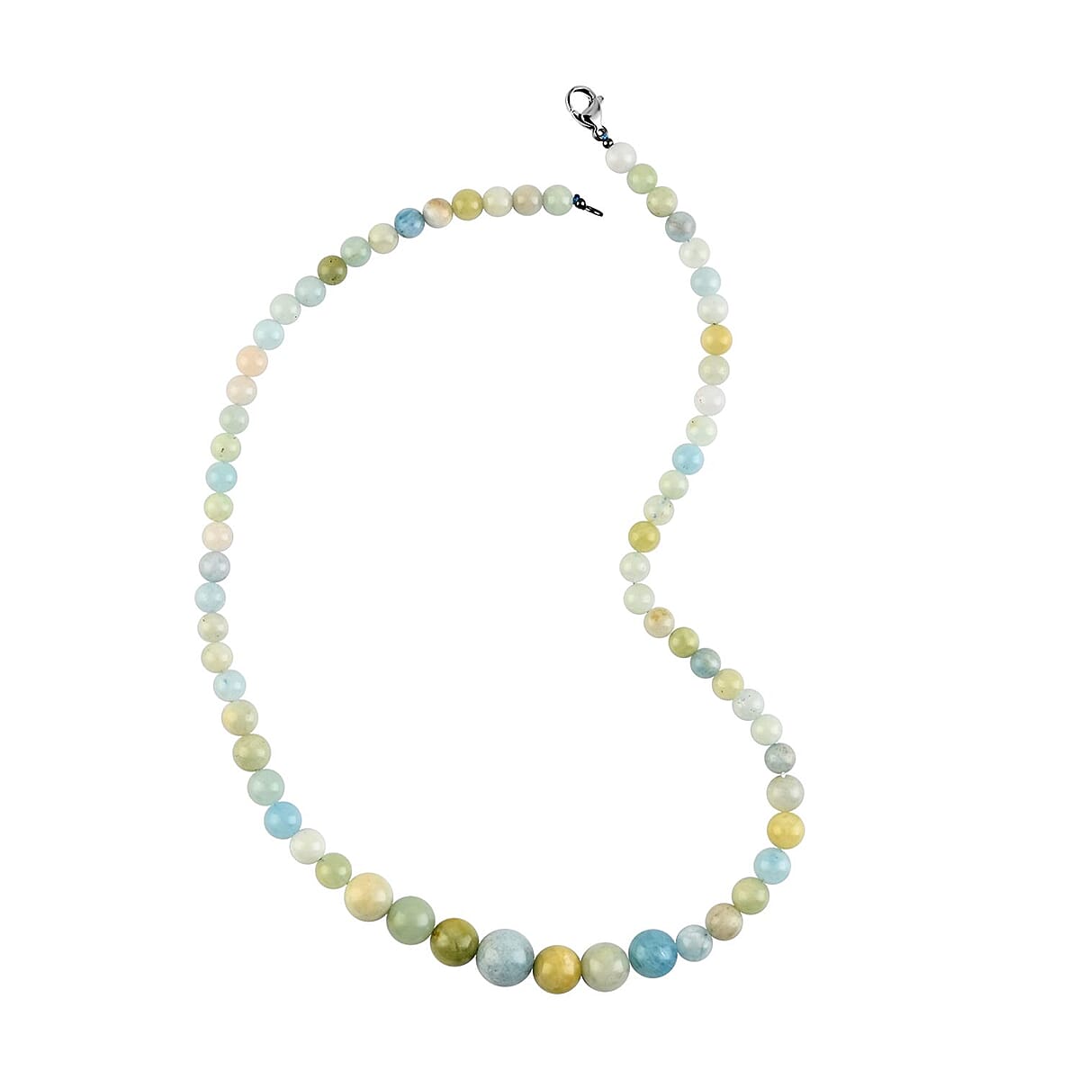 Multi-Aquamarine Beaded Necklace (20 Inches) in Rhodium Over Stainless Steel 180.50 ctw | Tarnish-Free, Waterproof, Sweat Proof Jewelry