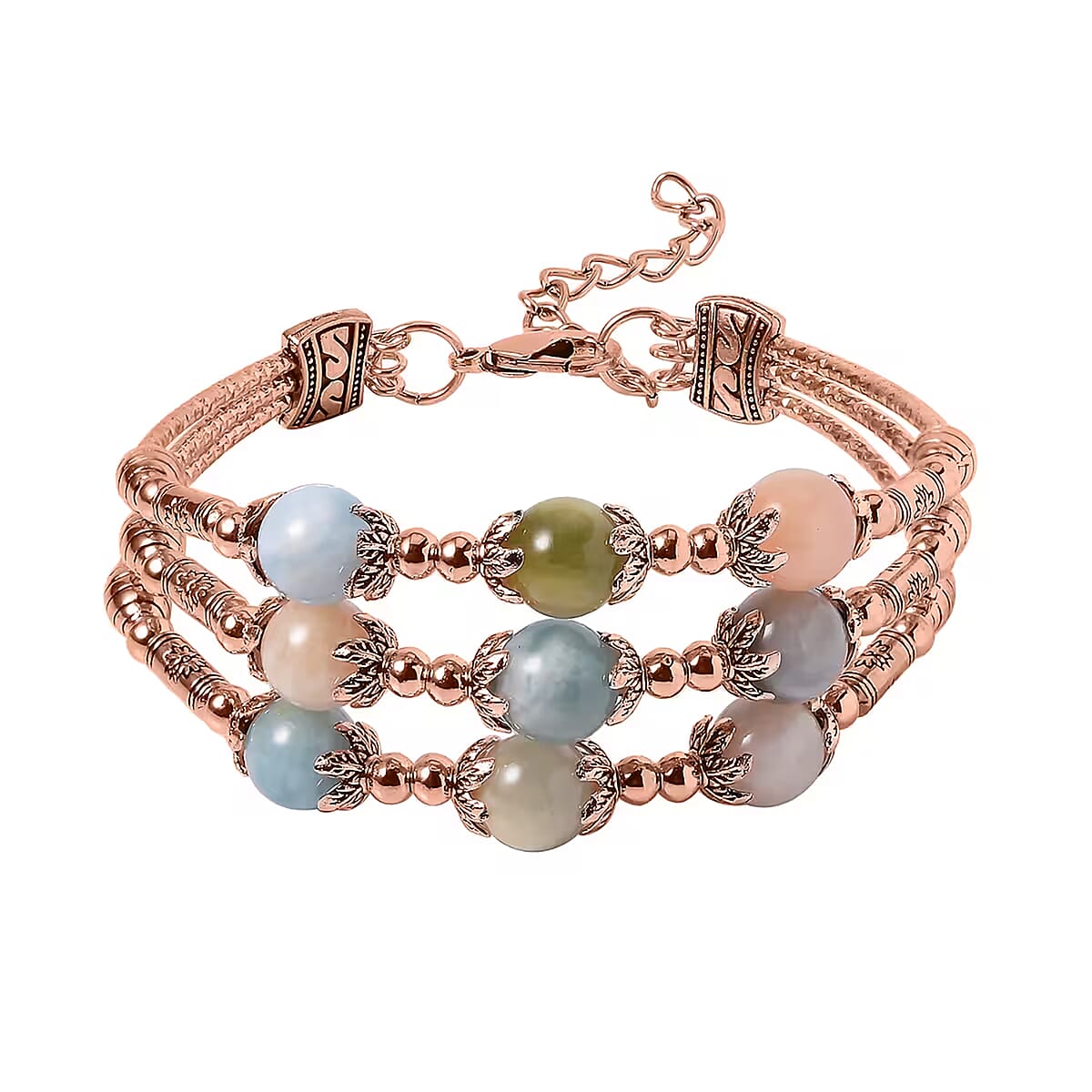 Multi Beryl 3 Row Station Bracelet in Rosetone (7-9In) 68.50 ctw