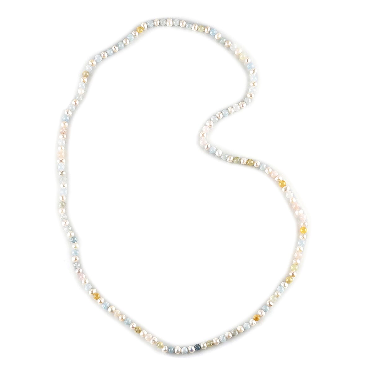 Multi Beryl and Freshwater Pearl Beaded Drape Necklace 36 Inches 238.40 ctw