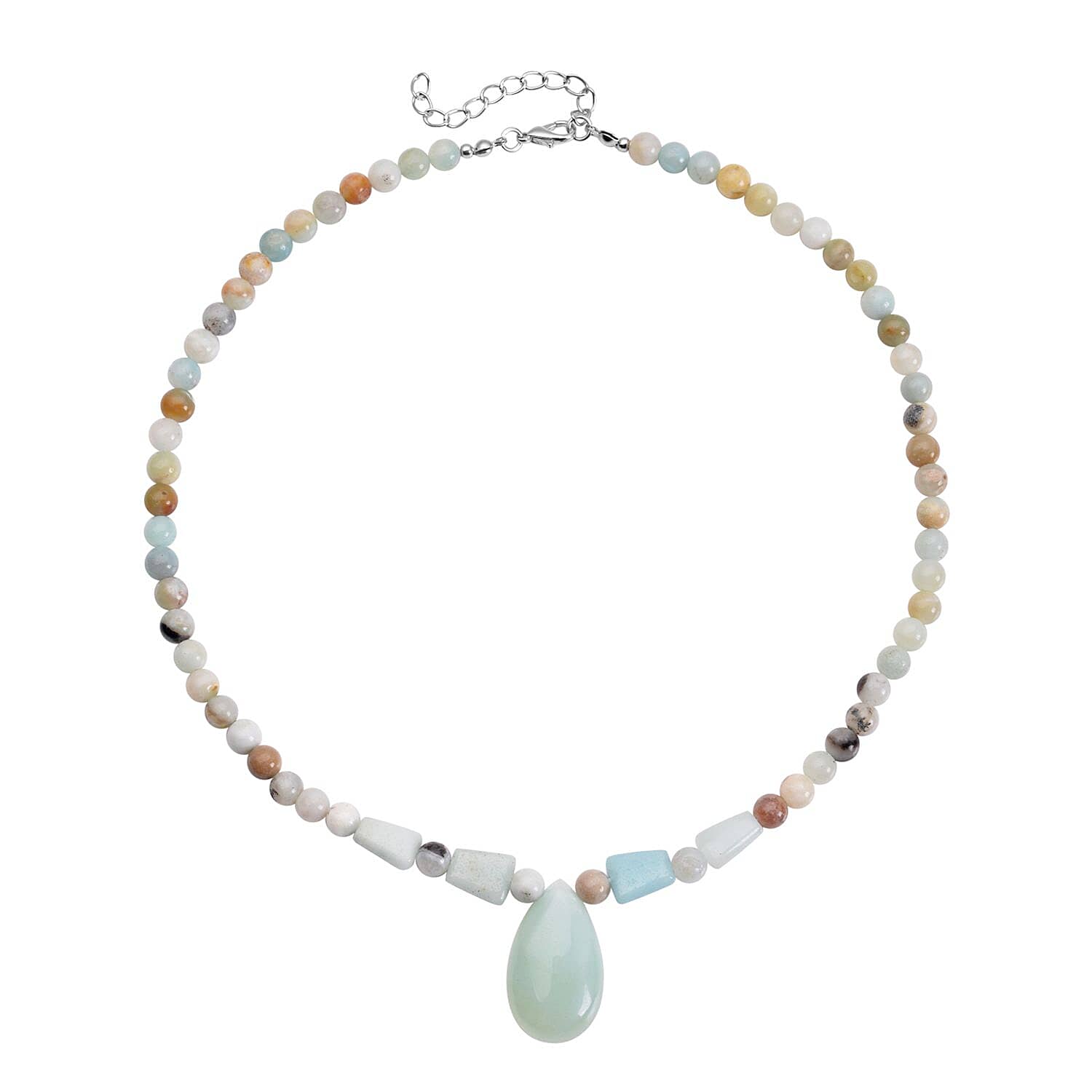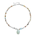 Multi Color Amazonite Beaded Tribal Necklace 18-20 Inches in Silvertone 154.50 ctw