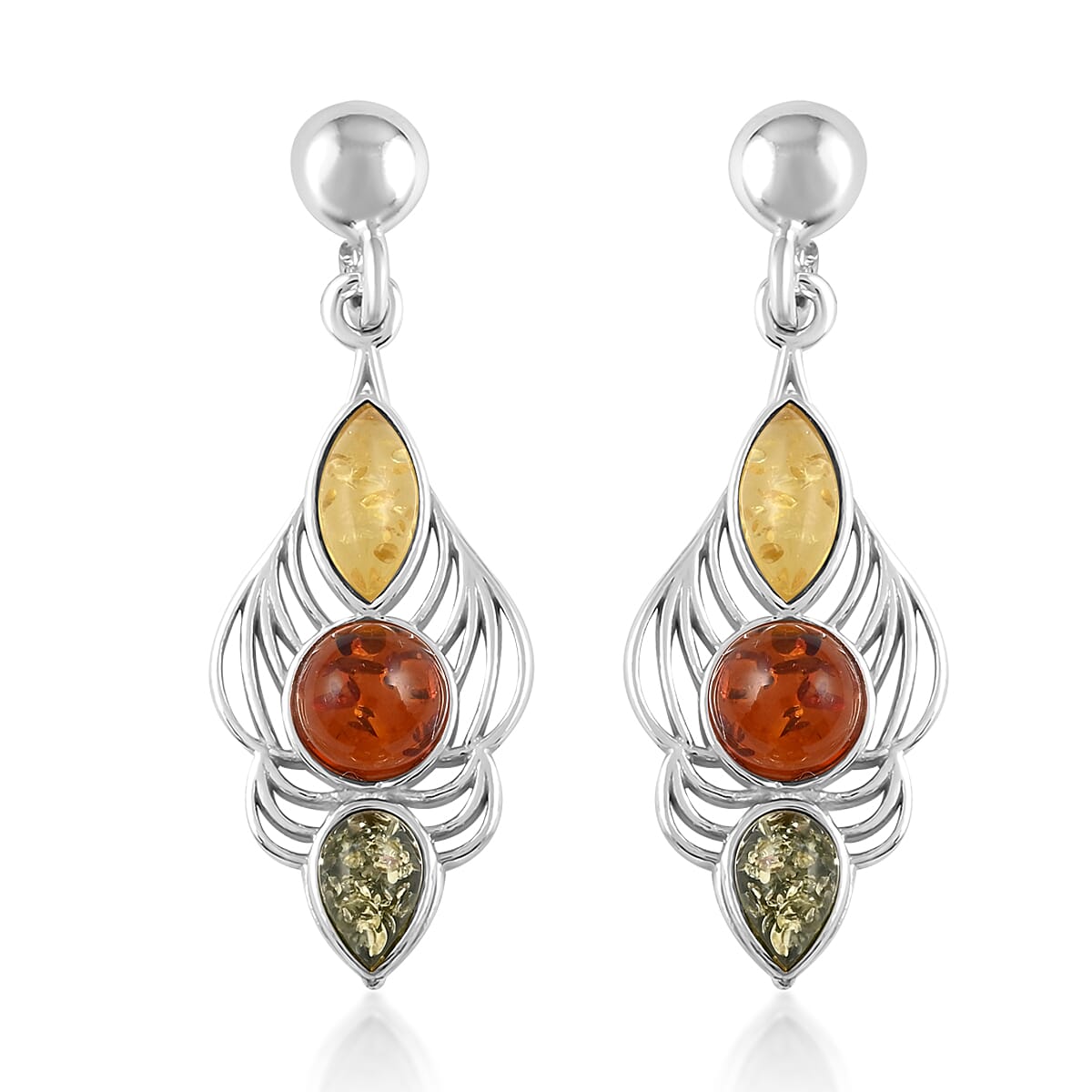 Multi Color Amber Earrings in Sterling Silver