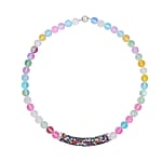Multi Color Aurora Borealis Glass, Multi Color Austrian Crystal Boho Style Necklace in Silvertone 20 Inches