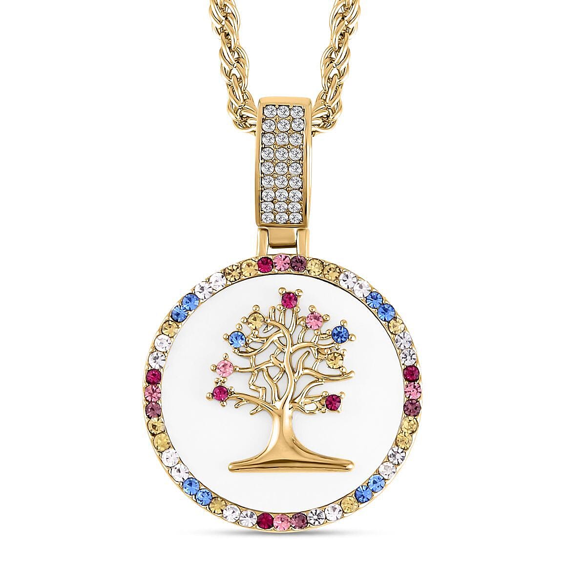 Multi Color Austrian Crystal and Resin Tree of Life Necklace 20-22 Inches in Goldtone